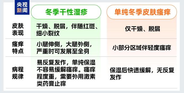 注意:冬季皮肤瘙痒不一定完全是干性湿疹,也有可能是皮肤瘙痒症、接触性湿疹、银屑病加重等情况。若瘙痒难耐,长时间未缓解,请及时就医。