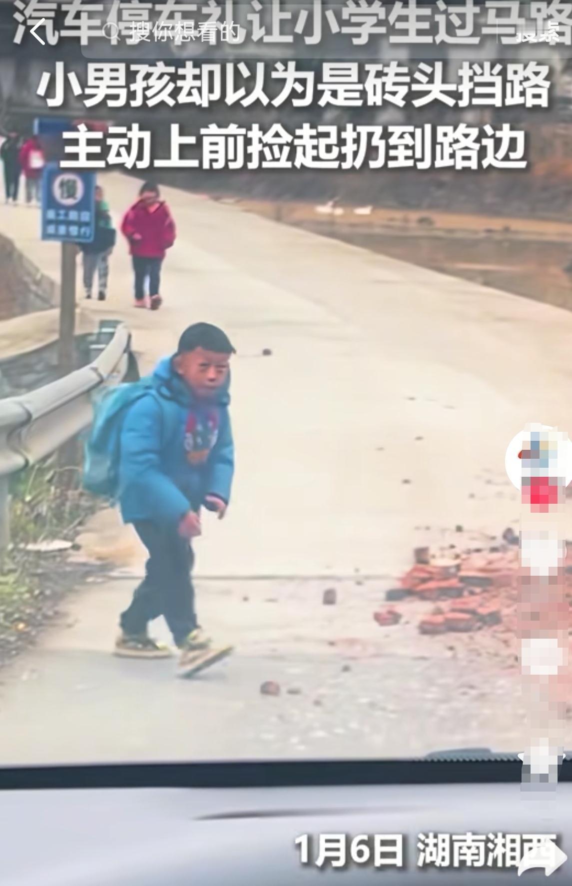 火到人民日报了! 湖南,女子开车回家,碰到学生放学, 就主动停下车让孩子们先过,不料一小男孩 以为是砖头挡了路,竟主动蹲下来清理, 把砖头捡起来扔到路边。 当天女子开车在乡间路,看到放学的孩子们,因路边有砖头怕不安全,便停车让行。多数孩子径直走过,小男孩却主动捡起砖头,几个同学也跟着帮忙。女子分享视频,却遭指责没下车一起捡。她先是失眠,后带零食和钱感谢小男孩,孩子拒收了钱。 这事,小男孩的善良纯粹,女子的停车礼让同样可贵。善意哪有固定模式?每个人的善举都值得点赞,别用刻板要求去磨灭真心。大家说,生活中这种温暖小事,是不是特能打动你?