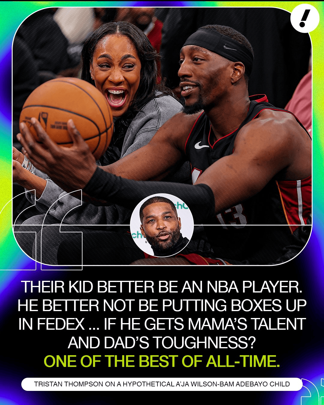 雅虎晒出特里斯坦-汤普森在节目中的一段玩笑式评价,谈到巴姆-阿德巴约与阿贾-威尔逊的潜在“天赋组合”。