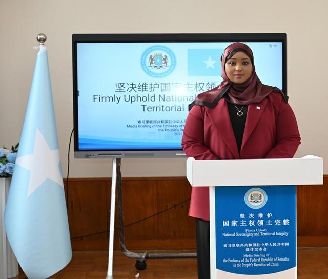 2025年12月30日,索马里驻华大使和丹在使馆主持新闻发布会。中国日报图片