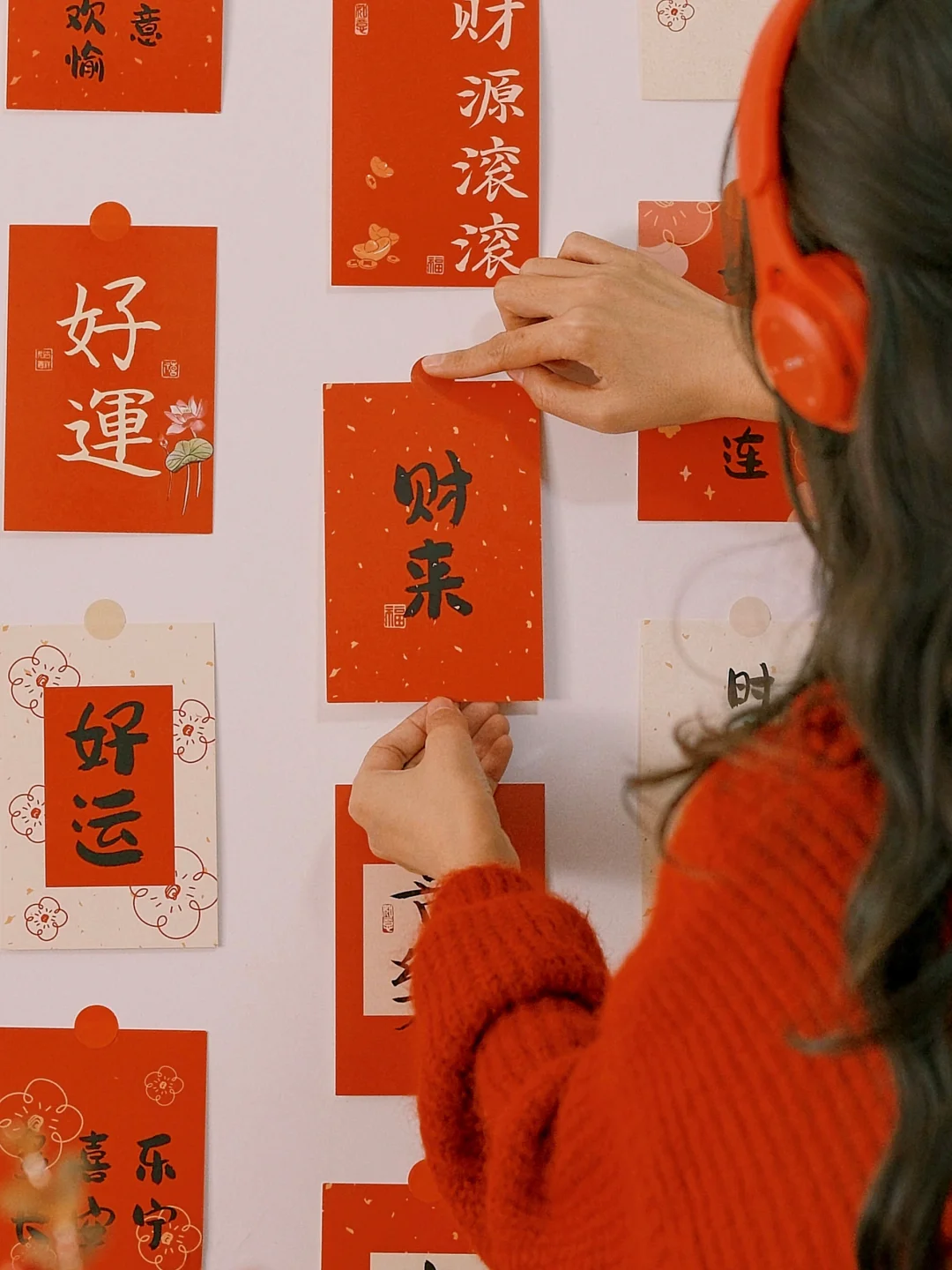 [二R]、场景只需一小块墙面贴上新年卡片,氛围感立马拉满。
