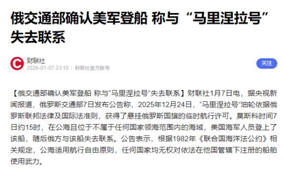 事情闹大了! 俄罗斯交通部通告全球:美军公海强行登船,“马里涅拉号”油轮随后失联