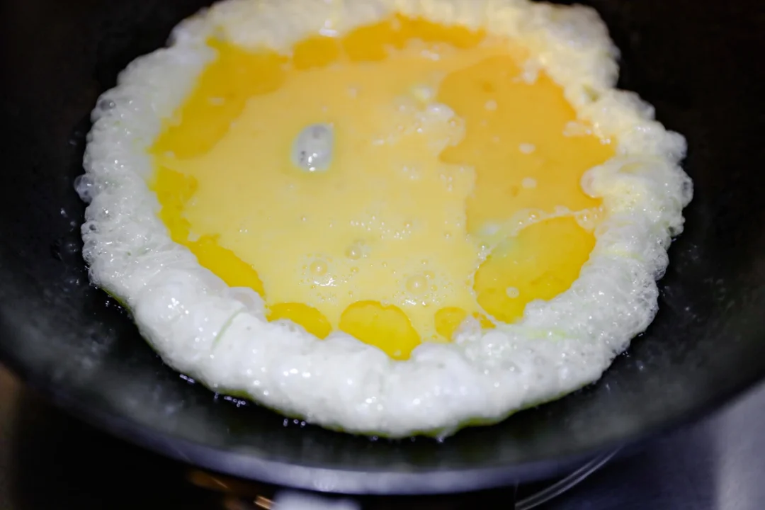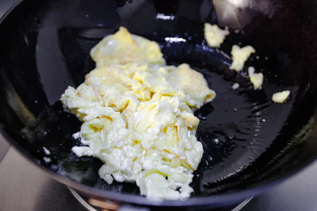 🌟2.鸡蛋几个打散,放入炒锅中,炒散,炒嫩。一定不要炒太老。