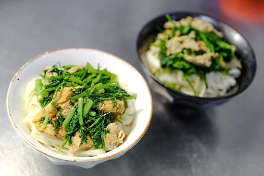 🌟4.面条煮熟以后,过凉水,控干水分放入碗中,铺上炒好的茴香即可。