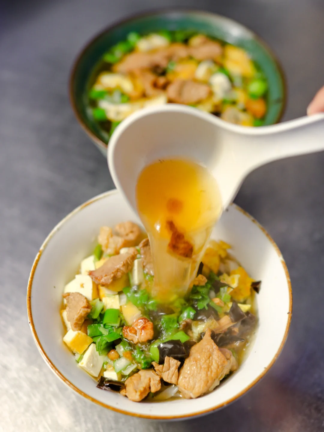 温度骤降,特别想吃上一碗浇汤面,热乎乎的,与当下的温度正好互补。