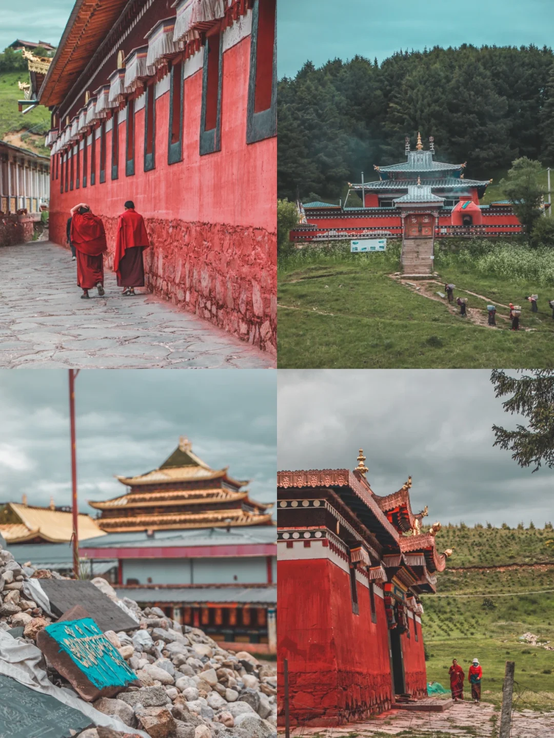 “朗木”在藏语里是仙女的意思 这是一个美丽的地方 也是一个由仙女守护的地方 🌟 郎木寺,其实是这个小镇的名字 这个小镇被群山环绕、绿植遍布 是难得的避暑胜地 一条白龙江从郎木寺镇中穿流而过 一半是甘肃省 一半是四川省 🌟 很多外国游客因为《西藏的地平线》这一本书 千里迢迢来到这里找寻隐藏在山间的世外桃源 🌟位于甘肃省的寺庙叫做达仓郎木赛赤寺 寺庙依山而建,金碧辉煌。这里有晒佛台、天葬台。 🌟位于四川省的寺庙叫做达仓郎木格尔底寺 有名的网红红墙就在这个寺庙的外墙。 【游玩体验】 1⃣️车子一开进【郎木寺镇】 立马感受到了小镇的热闹 我们直接开车去了【四川寺】这边 一个人30元的门票(车子不用另外收费) 2⃣️ 车子直接开到了【格尔底寺】的停车场 旁边就是一面巨大的【红墙】,真的很出片 因为我们到达的时间过了下午5点半了 就没有进寺庙了 直接走到红墙那里拍照。(很长的红墙) 3⃣️ 从寺庙望出去 可以看到远处高高的【红石崖】 以及【甘肃寺】那边金碧辉煌的寺庙 4⃣️ 从四川寺继续往前走 就可以达到小众景点【纳摩峡谷】 大约需要徒步40分钟 5⃣️ 首先会来到一片草地 白龙江流淌在草地上 旁边是转经筒 还有一些僧人坐在草地上 6⃣️ 继续往前走 可以看到一个仙女洞 洞口游五彩经幡和玛尼堆 7⃣️ 再趟过河流中的石头路 就开始进入纳摩峡谷了 这里可以选择继续走路 或者付费骑马走到峡谷上方的大草坪 我去到的时候天色已晚 只能航拍看了一下大草坪 听说站在大草坪上可以看到郎木寺镇的全貌 8⃣️ 往回走的时候 听说旁晚8点左右 可以在【闻思学院】看辩经 在僧人的指引下 来到【闻思学院】 坐在石阶上 听着诵经的声音 看着远处一座寺庙上 升起煨桑的烟 还有一群背着物品的阿佳 此时此刻 突然才意识到 现在的郎木寺 不就是一直向往的世外桃源吗? 🌟🌟🌟🌟🌟 如果下次再来郎木寺 我会放慢脚步 走上周边山坡的草地上 看风吹过小镇 ❤️ 我会穿过纳摩峡谷 站在大草坪上 看一眼这个山间世外桃源的本来样貌 ❤️ 我会走过各个小巷 去感受这里的生活和信仰 ❤️ 我要把甘肃寺和四川寺都逛一遍 还要在热闹的小镇品尝特色美食