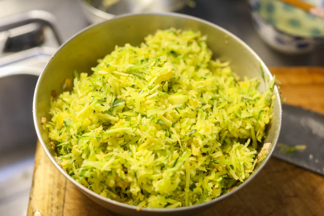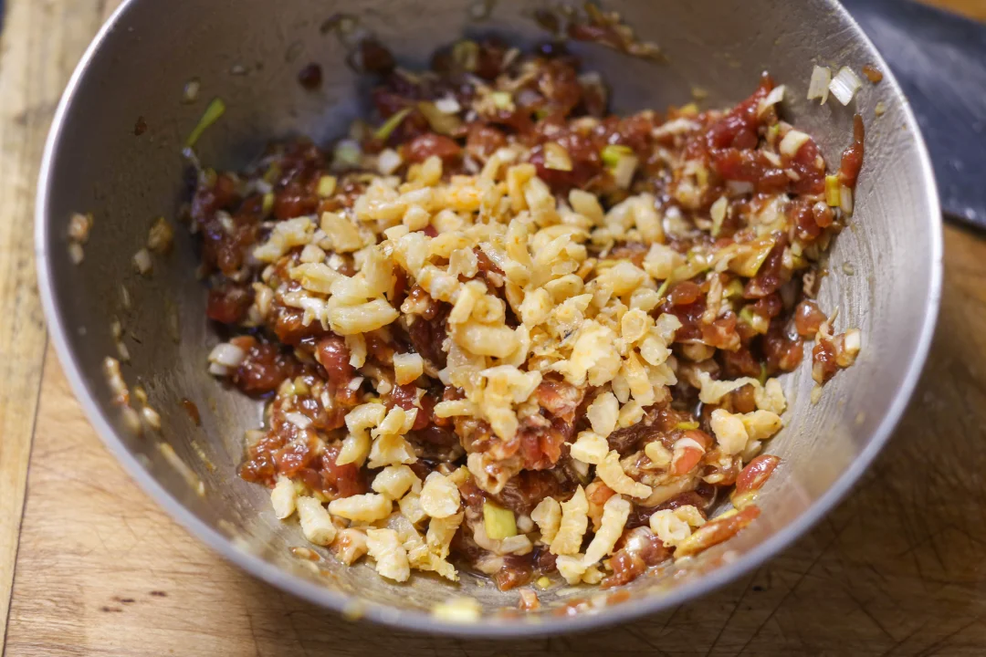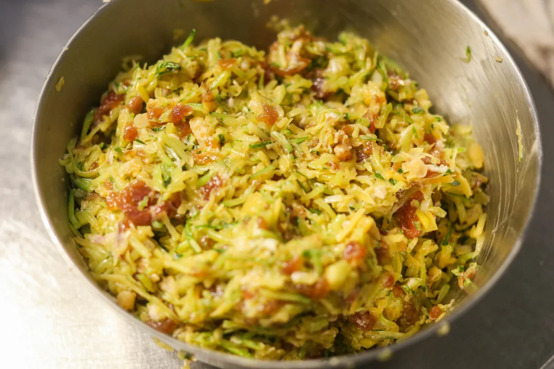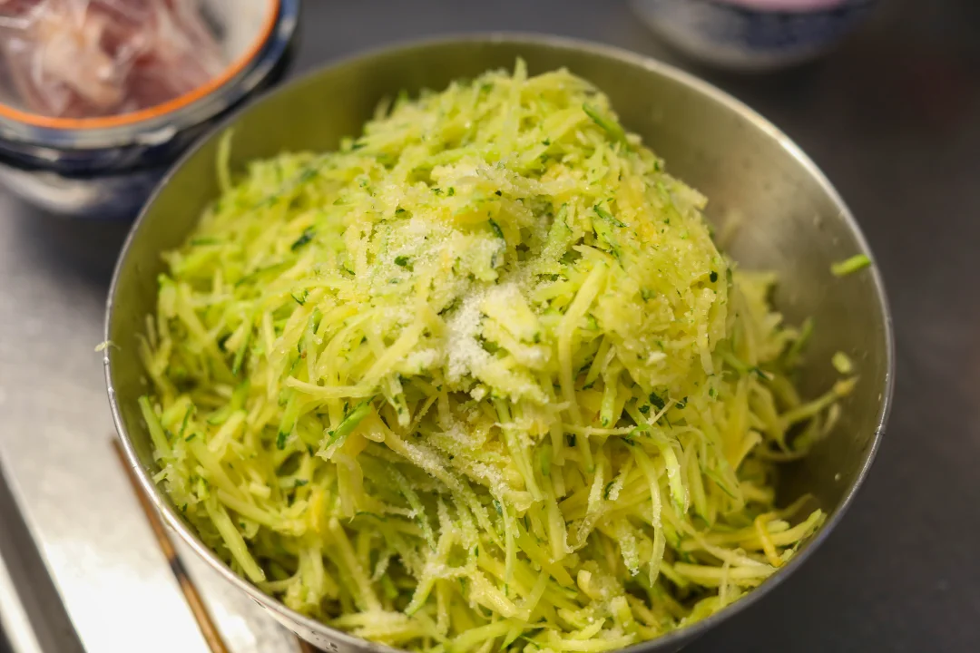 瓜丝与肉丁相遇,撒上海米碎,淋一勺葱油,整个馅料忽然明亮起来,像秋阳穿透云层。