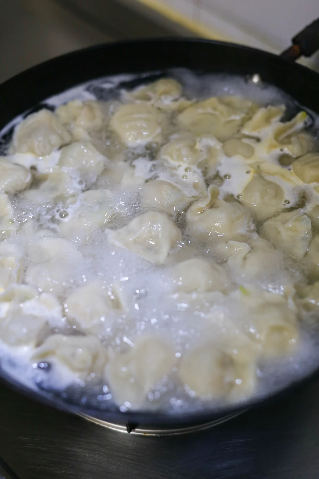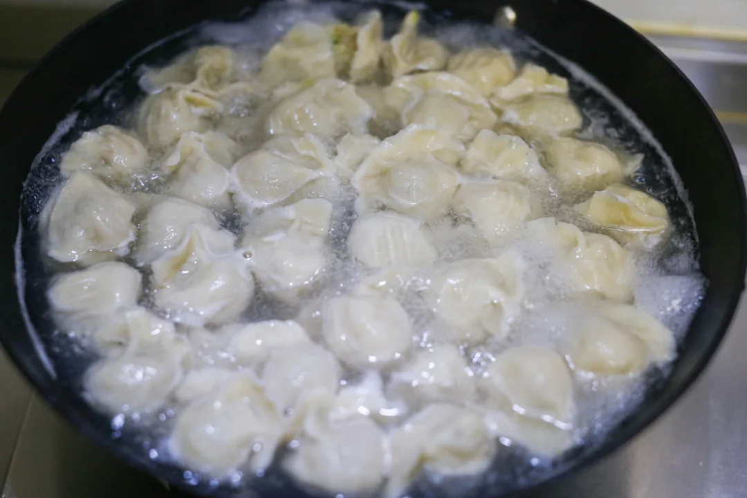 7:包好的饺子,开水下锅,点水三次。