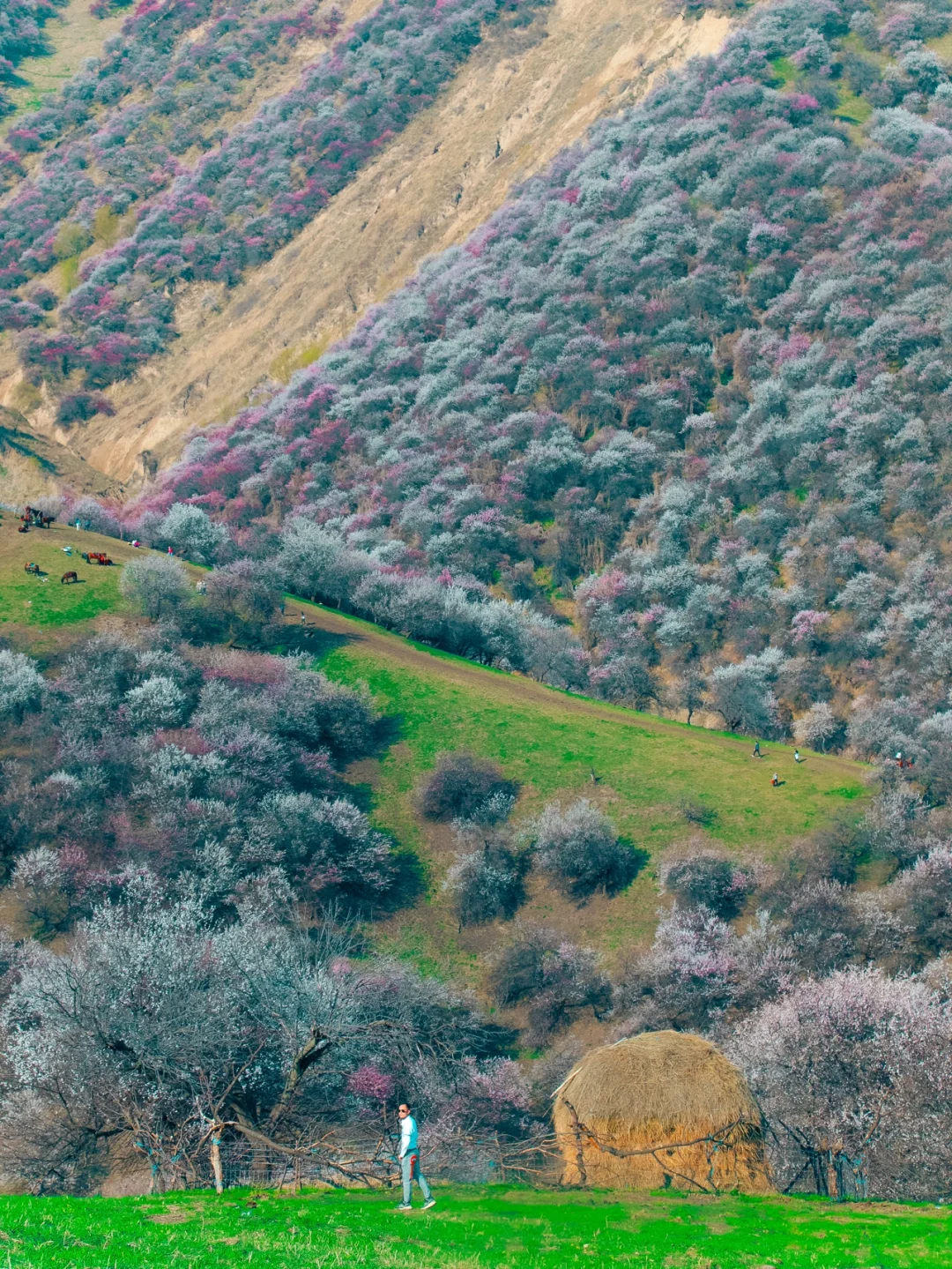 7⃣️新疆伊犁【吐尔根杏花沟】,推开门漫山遍野都是春天的美景,每年四月底五月初花期最佳。