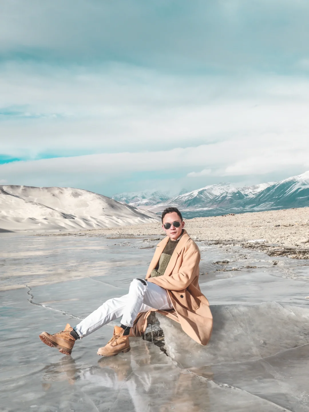 冬天的白沙湖 被冰封住了 用航拍 竟然也可以拍出蓝冰的感觉 ❤️❤️❤️ 自己车开过 帕米尔高原白沙湖观景平台 大约3-5公里的地方 有一个小山坡 从那里可以走到湖边 近距离接触白沙湖 注意不要走到太远的地方 一定要以安全为前提 🌟🌟🌟 新疆帕米尔高原的白沙湖 需要办理边防证才能达到 就在喀什机场附近的【自驾车营地】免费办理 目前淡季,拿身份证区只要几分钟就能办好! 🌟 白沙湖距离喀什约3小时 自驾线路路况不错,全程水泥路!