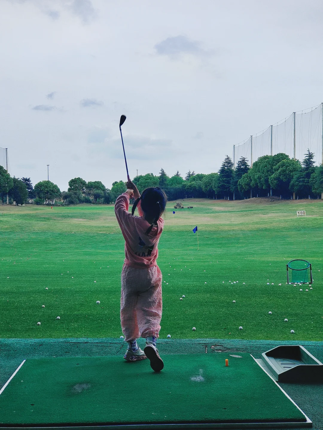 🏒酒店步行几分钟就到了高尔夫球场,场地很开阔,周边风景宜人。小丸子学得有模有样,也是打过高尔夫的宝宝了。