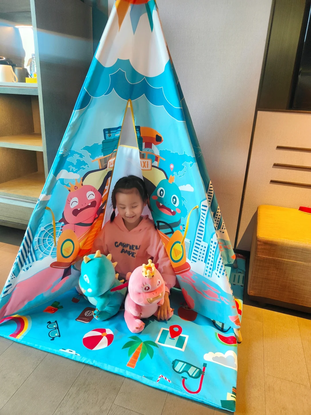 👨👩👧我们入住的是星奇宝贝亲子房哦~各种星奇宝贝玩偶、抱枕,还有小帐篷和滑滑梯,小朋友开心到起飞呀!