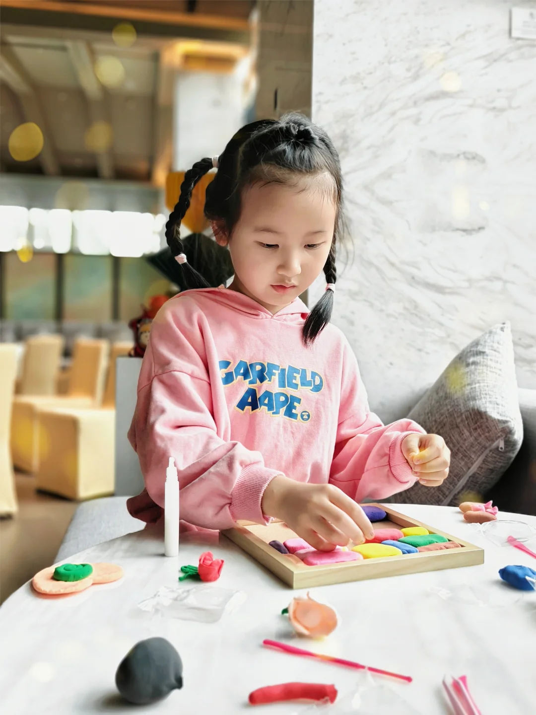 每周六下午都有亲子活动呢,我们体验的是超轻粘土版画,小姐姐很耐心的指导陪伴小丸子一起,一个小时完成一幅作品,小丸子成就感满满❤️。