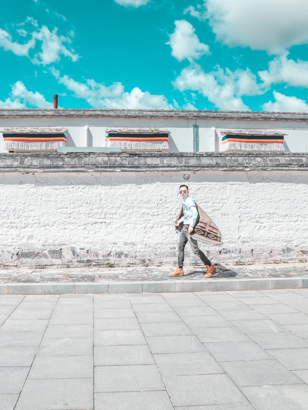 ❤️快到拉卜楞寺主殿广场前一面好看的白墙,蓝天白云藏式建筑,简直太好拍了。