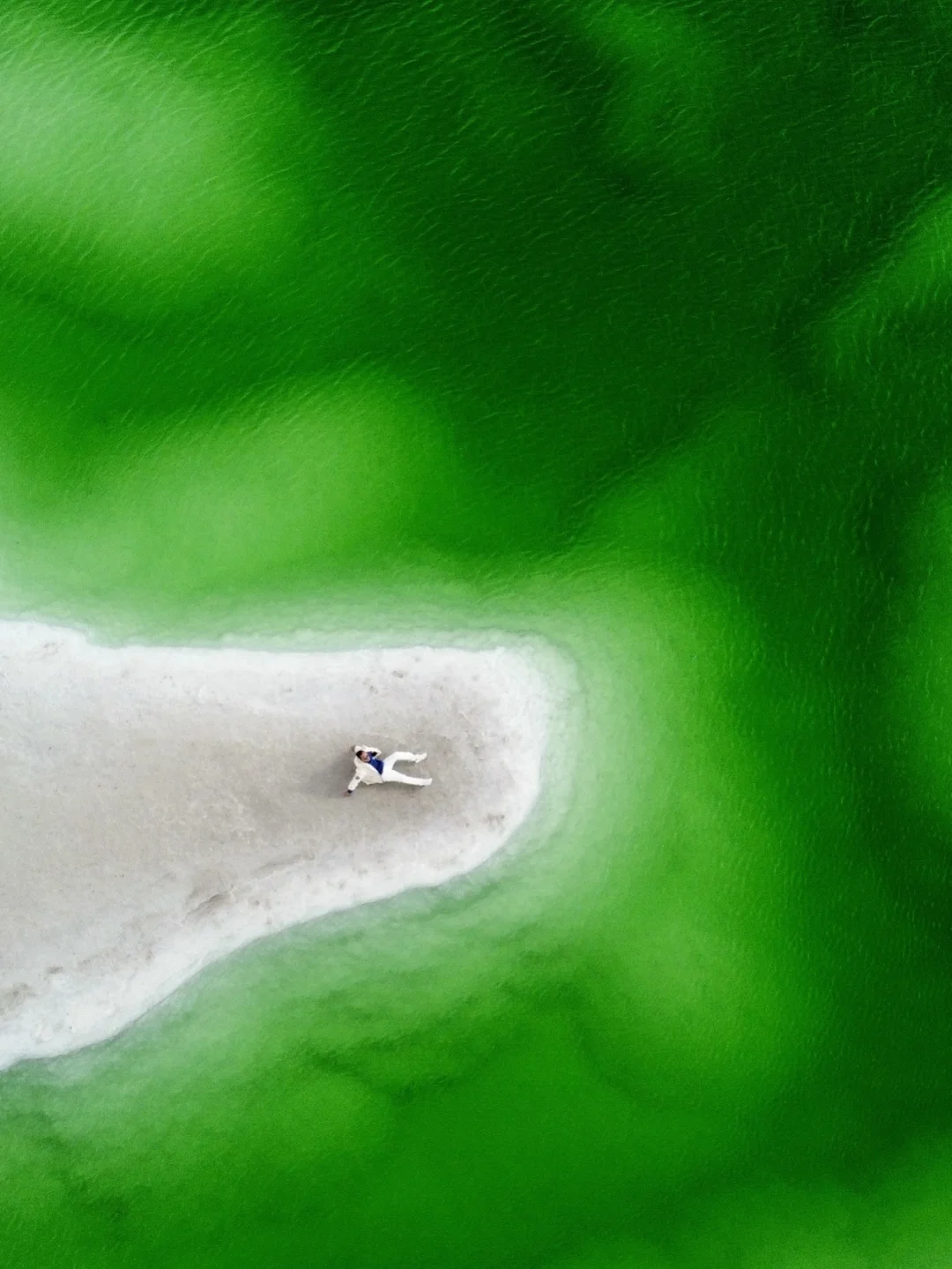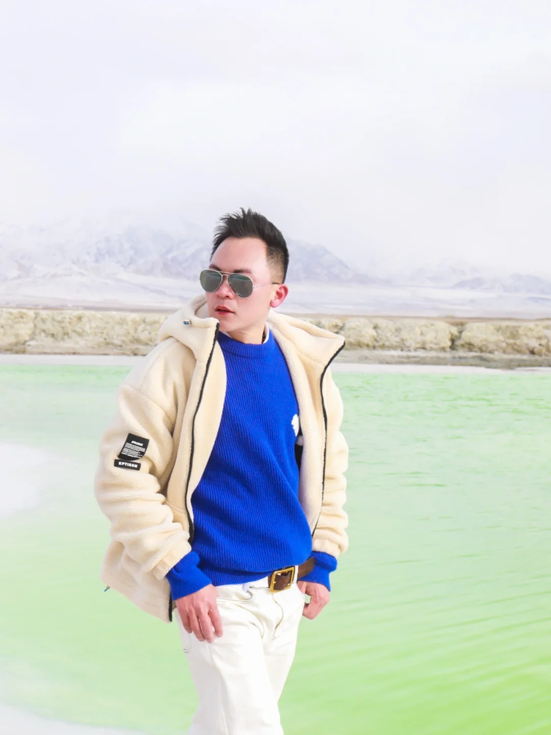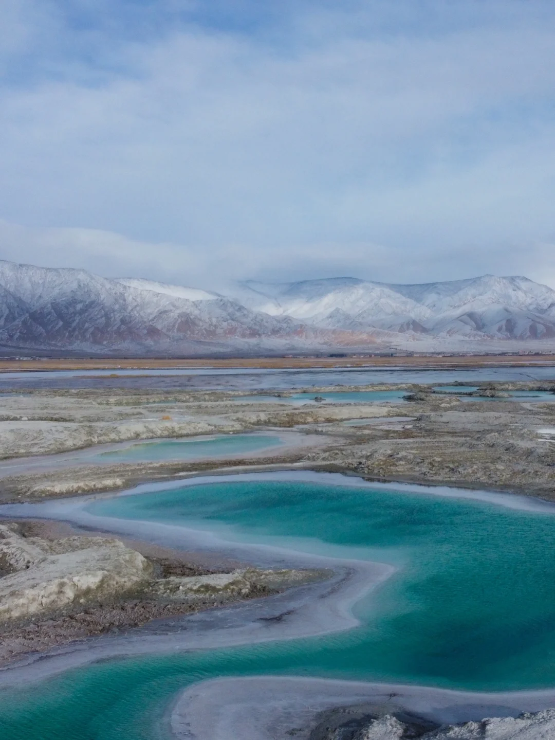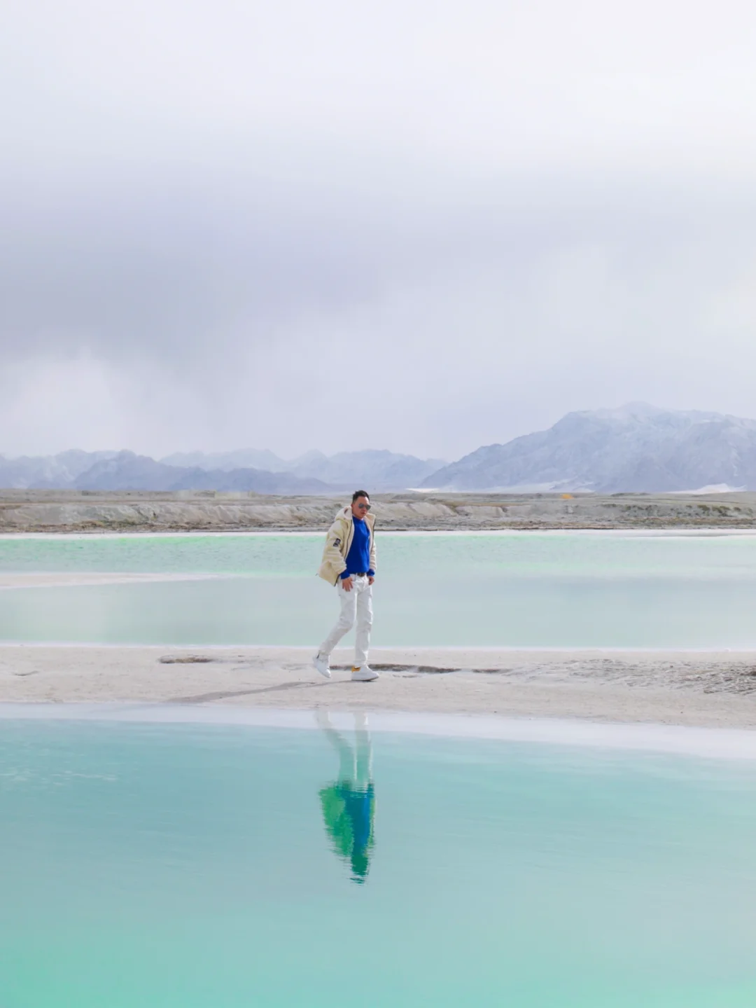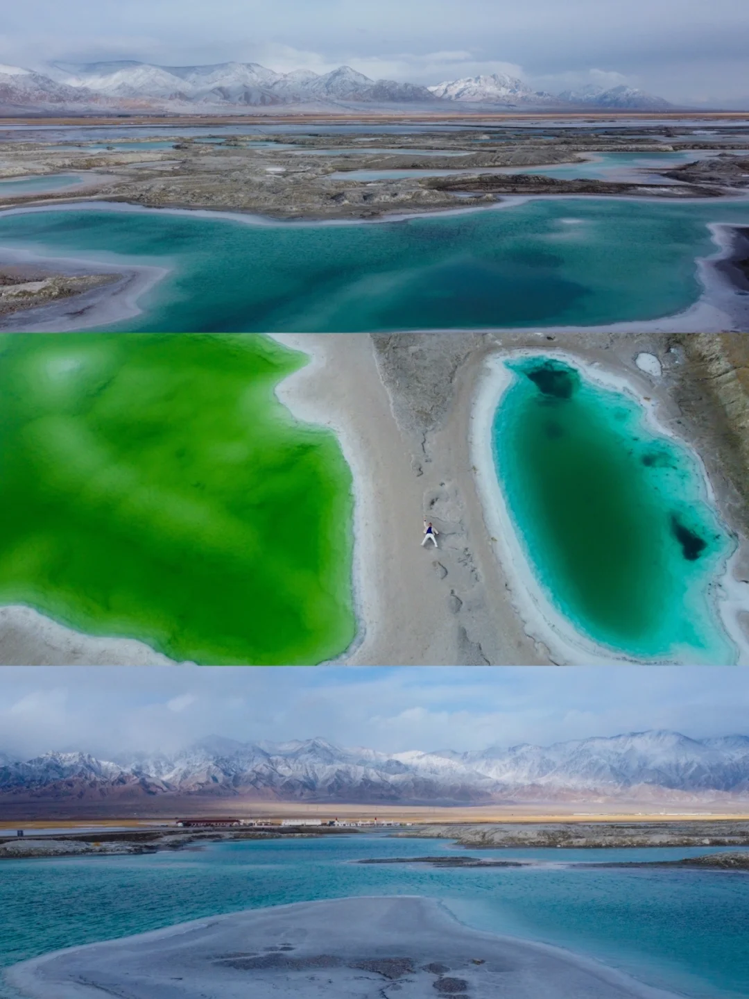 3⃣️继续往前走10分钟(图1)这里是蓝色的湖水,湖很大,很多包车团队会带客人在这里拍照,躺在湖中的陆地上,垂直俯拍。仿佛是躺在巨大的蓝宝石中。