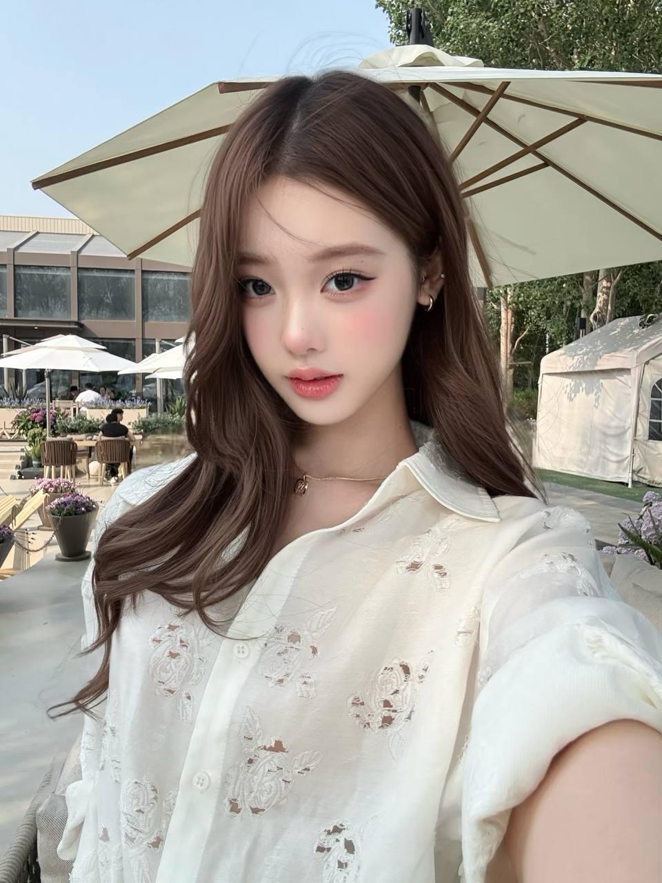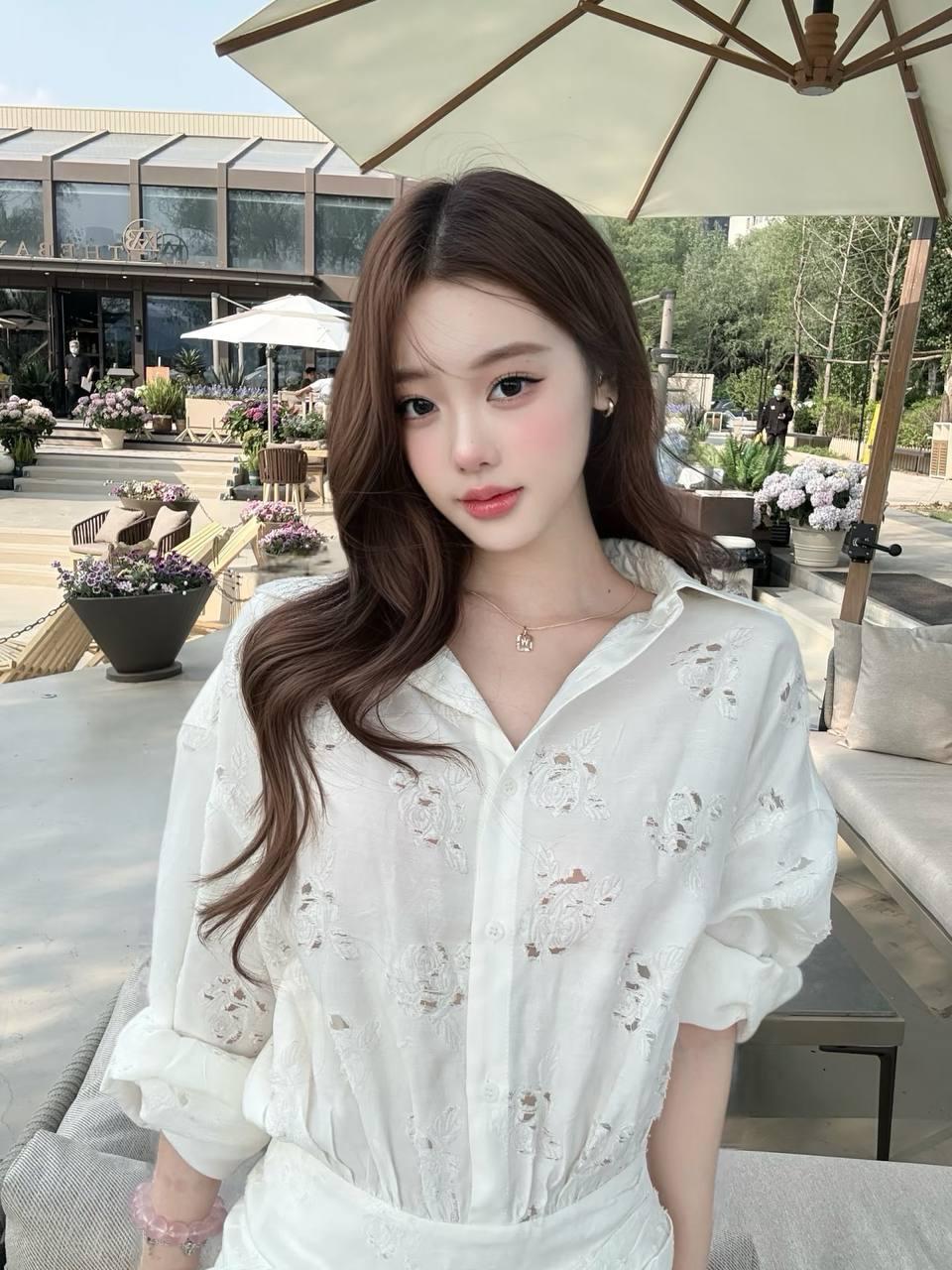 温柔甜美的自拍白色蕾丝衬衫元气满满🌸💕美女 美少女 少女感白衬衣
