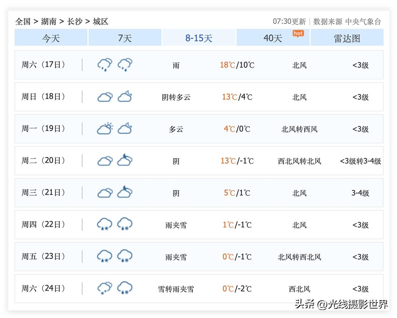 1月22日到24日,湖南省长沙市,有望飘雪花甚至下雪!嗯嗯,虽然1月10日到17日的长沙市,最高气温21度,虽然最近长沙市迎来了超级暖冬,非常温暖,阳光经常在线……但是,超级冷空气已经在酝酿中了! 1月20日开始,大范围雨雪天气将会袭击长江流域! 从上海杭州到武汉、重庆、成都……无一例外! 超级计算机给出的中长期天气预报大趋势……不同的超级计算机给出的结果,基本一致! 1月16日,长沙市最高气温21度。 …… 1月24日,长沙市,雪转雨夹雪,气温暴跌至0度到-2度。 …… 长沙的小伙伴们,1月下旬……可以计划去张家界、凤凰古城、衡山,看雪玩雪……哦!不对,是广东省广州市和深圳市的小伙伴们,可以密切关注湖南的中长期天气预报……密切关注张家界、衡山、长沙、凤凰古城的天气预报……一旦湖南下雪,广东人,赶紧出发吧!