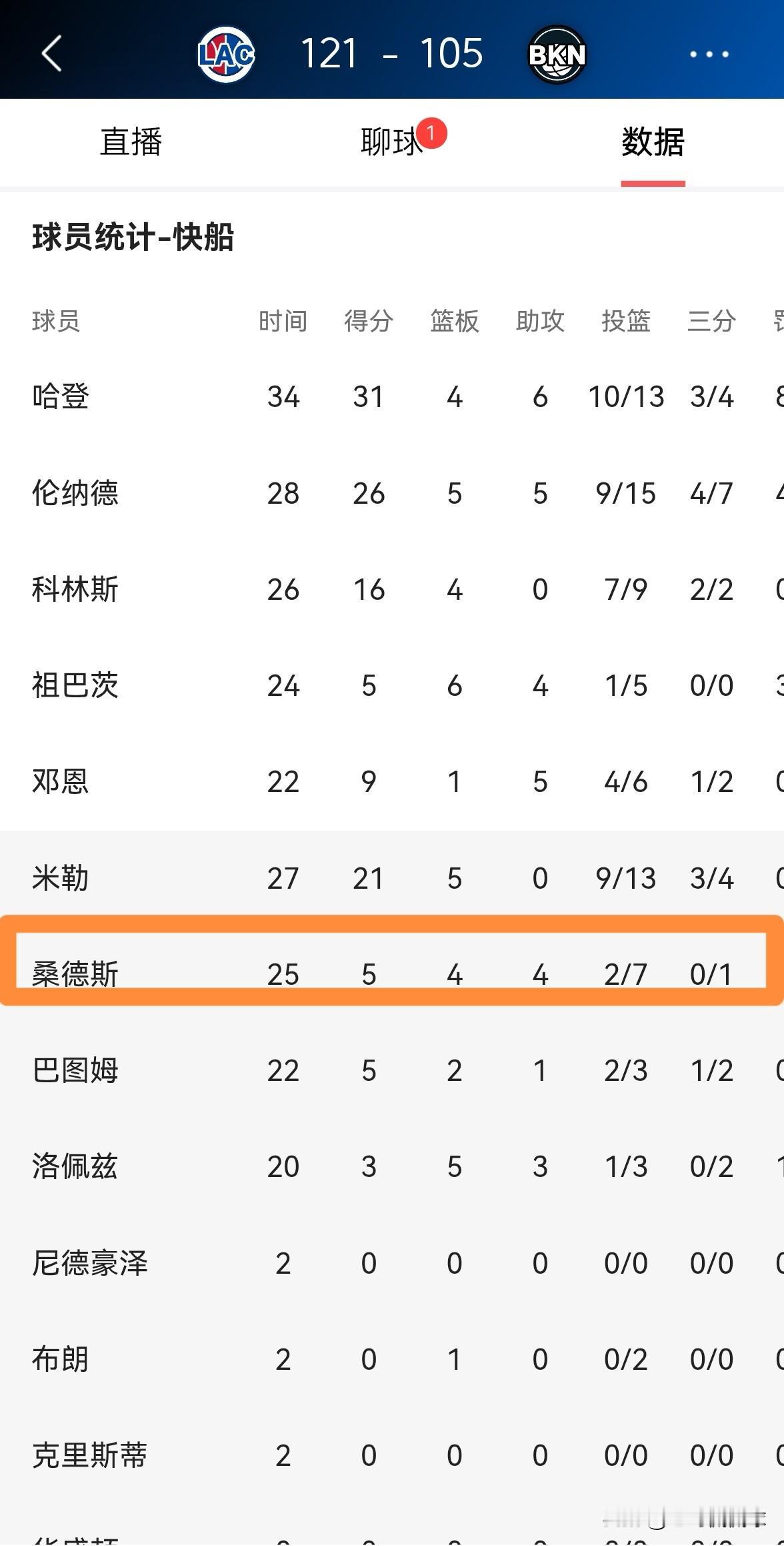 快船新星桑德斯真是太暗淡了!在今天快船客场以121:105大胜篮网的比赛中,桑德