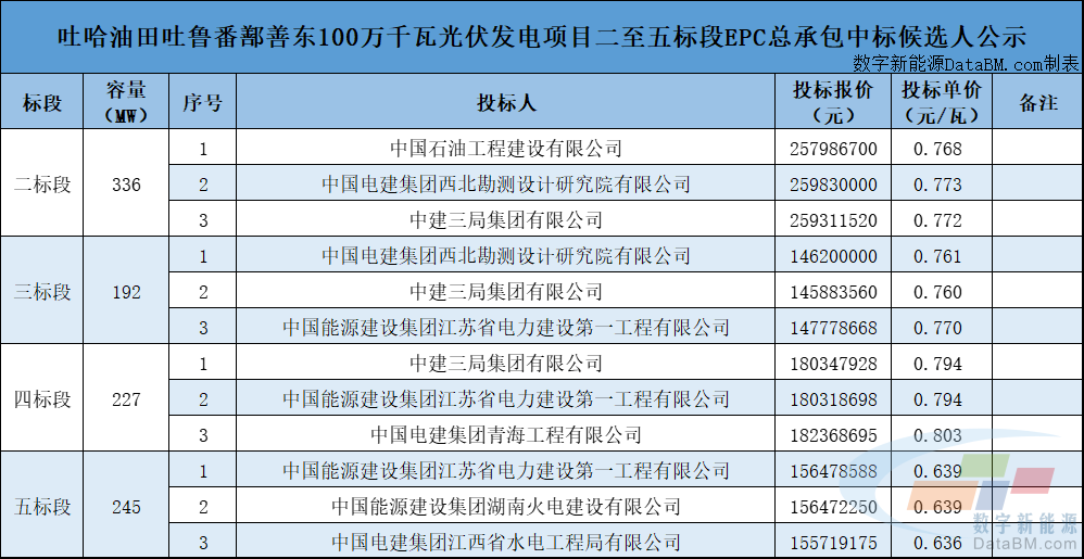 根据公告内容显示,此次共有7家企业入围,投标单价在0.636-0.803元/W。具体如下: