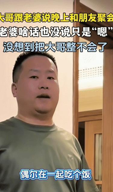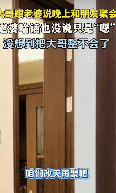 男子的朋友喊他晚上去聚餐,他向他老婆请假,没想到,几番下来,他老婆啥话没说,只是