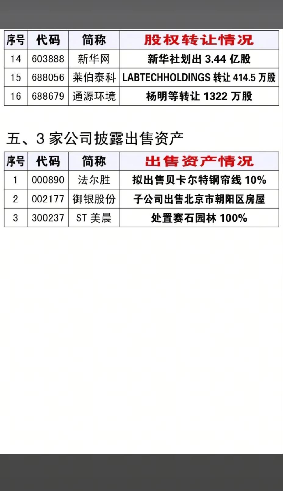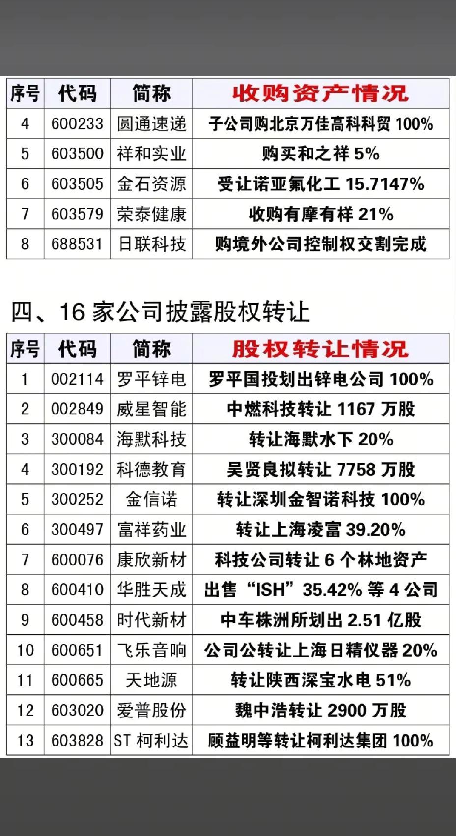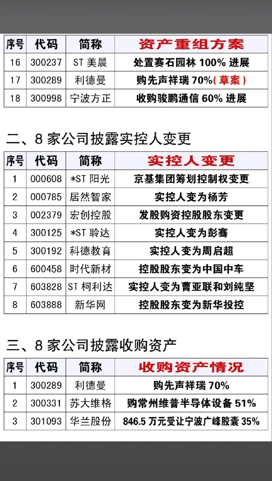 1月10日,下周A股这些股票有望大涨!!! 18家股市披露资产重组事项,重点关注:华菱线缆购安徽三竹智能35%批复,后市值得高看一眼;恩捷股份购青岛中科华联新材料100%进展,后市值得重点关注;8家公司披露实控人变更;8家公司披露收购资产;16家公司披露股权转让;3家公司披露出售资产!!!