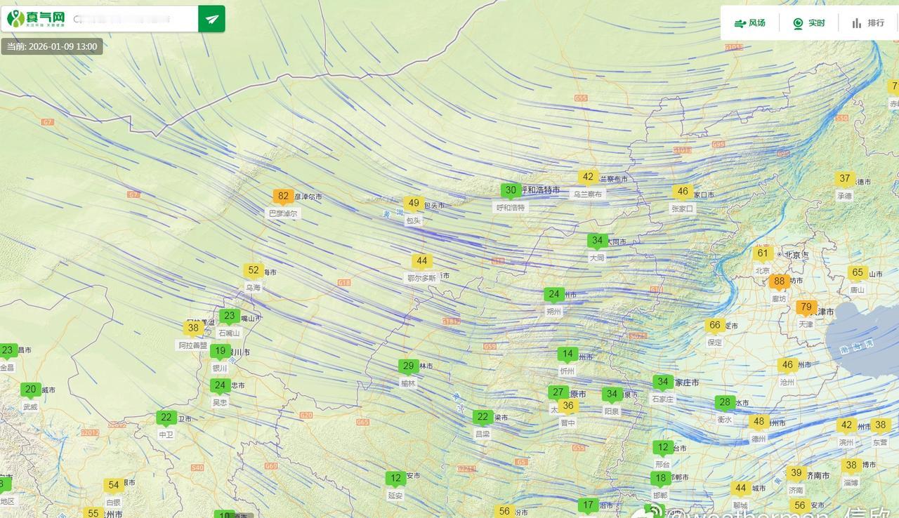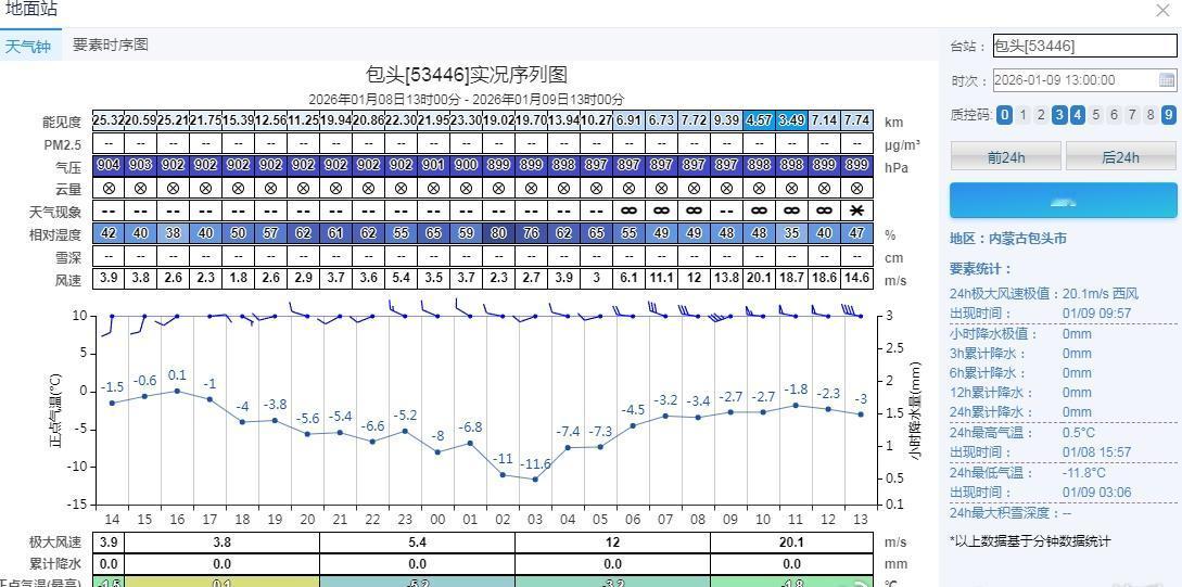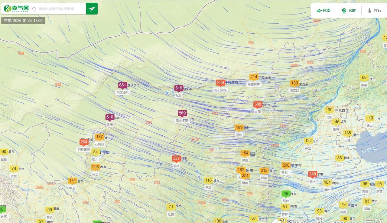 【雪混沙尘】今天内蒙古河套一带出现了沙尘和降雪混杂的情况。包头的观测报给出霾,应该是沙尘,因为PM2.5浓度很低,PM10浓度很高,而且风很大。13时包头PM10浓度还500微克/立方米以上,严重污染,同时天空还飘起了雪花。