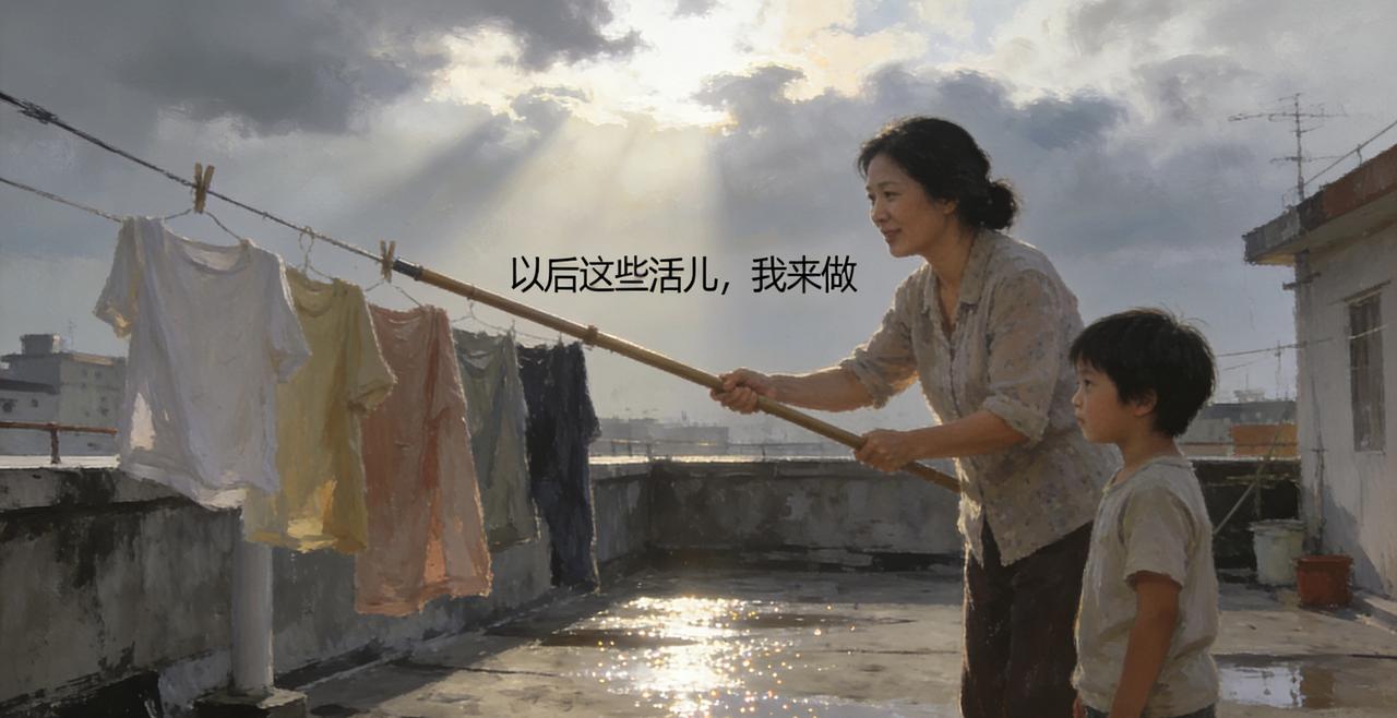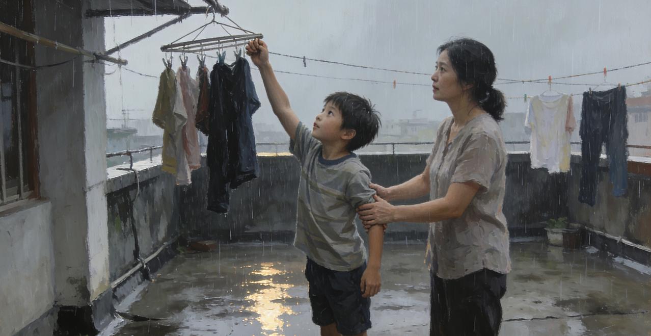 记忆里有个清晰的转折点——不是某件大事,而是最普通的时刻。我的童年,结束在九岁那年初夏的一个雨天。 那天下午暴雨刚停,空气里有泥土被浸泡过的味道。母亲让我去天台收衣服,却在我伸手够衣架时,轻轻按住了我的手腕。 “我来吧。”她说着,接过我手里的晾衣杆,“以后这些活儿,我来做。” 那一刻,阳光正撕开云层,照在湿漉漉的水泥地上,反射出细碎的光。我忽然意识到,母亲按住我手腕的那个动作里,包含了某种决定——她决定不再让我够着那些高处的衣架,决定让我从“需要照顾的孩子”这个身份里毕业。 童年往往不是轰轰烈烈地离开的。它消失在一个平凡的下午,在你甚至没有意识到这是最后一次的瞬间——最后一次无忧无虑地踩水坑,最后一次理所当然地够不着高处的东西,最后一次被完全当作孩子对待。 天台上的衣服在风里飘着,滴落的水珠在阳光下像短暂的彩虹。我知道有些东西和这些雨水一起蒸发了,再也回不来。 后来我也成了那个按着孩子手腕说“我来吧”的大人。在每个相似的下午,我都会想起九岁那年——原来成长只是一瞬间的事,而童年离开时,连再见都没有说。