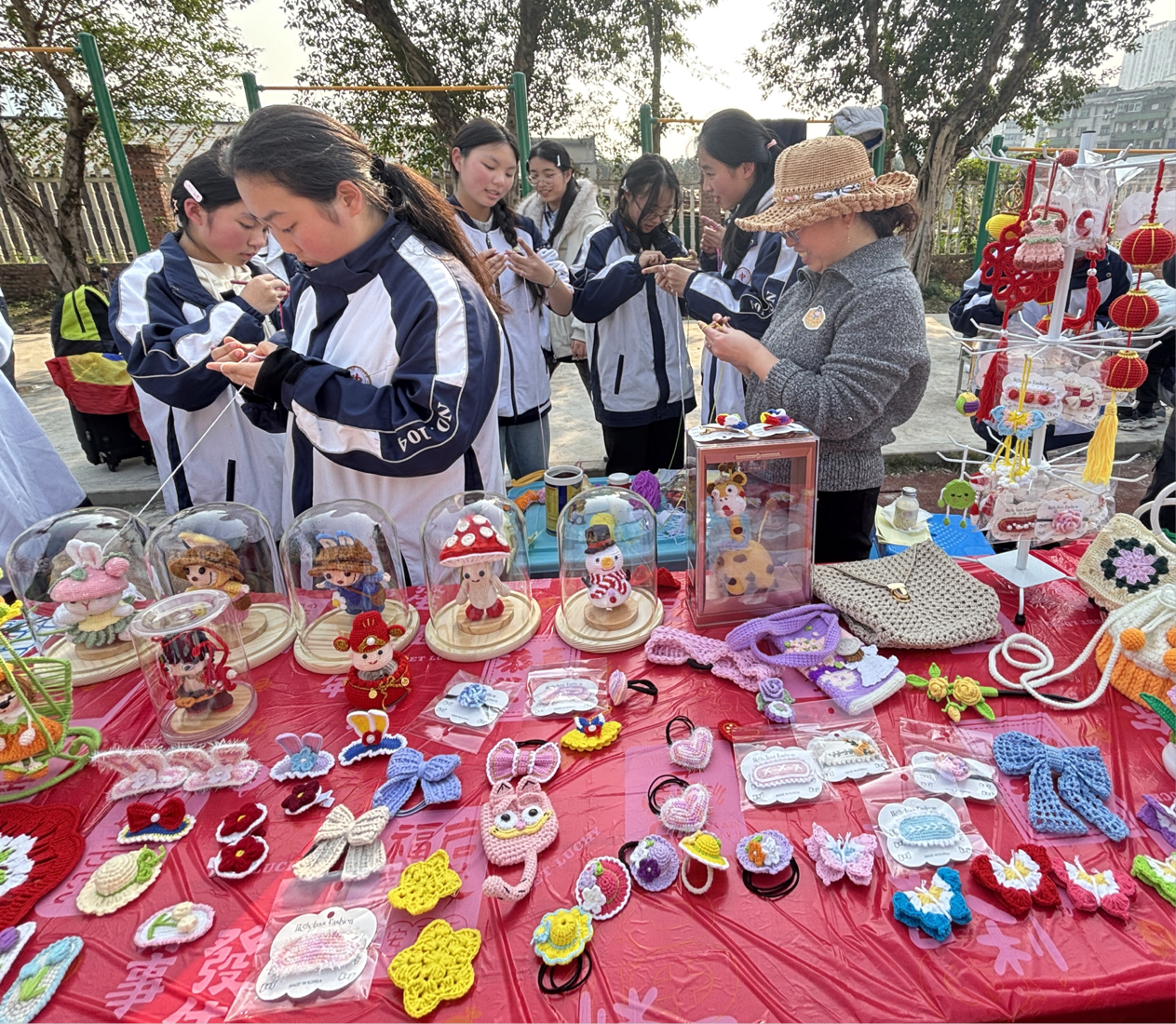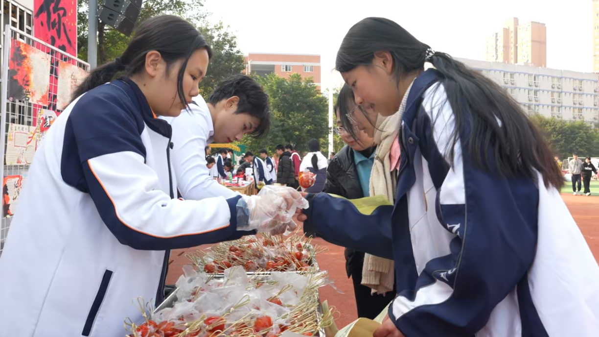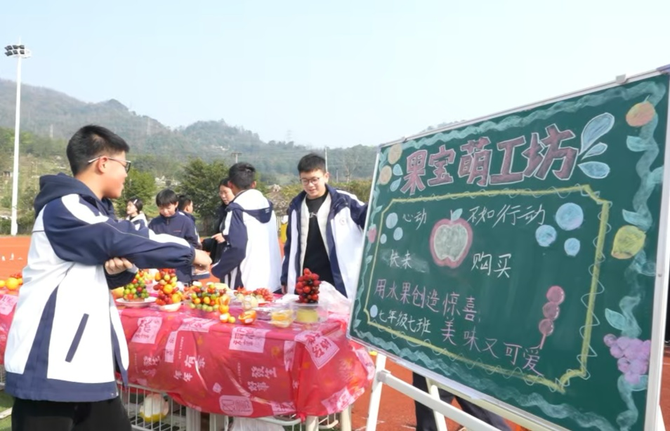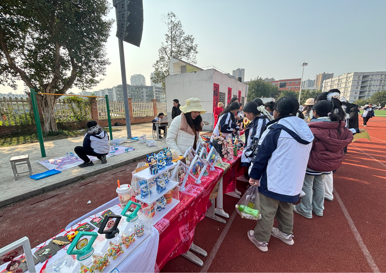 “朝晖集市”热闹非凡,成为学生实践能力与创意才华的展示平台。在年级创意展示区与社团成果展示区里,面塑社团的同学们以巧手将面团化作艺术珍品,掐丝法文化社团的同学们在精细操作中感受传统工艺的魅力,心情社通过心理趣味活动为同学们搭建释放压力、滋养心灵的温馨港湾……手工钩织的精美饰品、色彩斑斓的绘画作品、笔力遒劲的书法佳作整齐陈列,尽显美育熏陶成果;美食摊位前,香气四溢,学子们亲手制作特色小吃,吸引了众人驻足,大家也在动手实践中体悟劳动之美;二手物品交换区里,同学们有序置换闲置物品,在互动中培养节约意识与沟通能力……各类实践场景让人目不暇接,生动诠释了“五育并举”的育人理念。