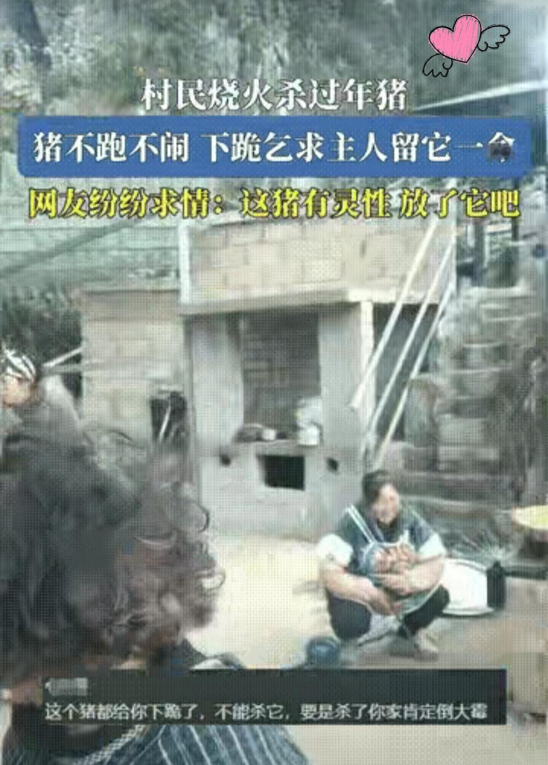 “万物有灵”真不是空谈! 贵州村民杀年猪的阵仗都摆好了, 柴劈好水烧开,结果 猪突然弯曲前腿跪地, 低着头静静望着众人, 那模样谁看了都心头一软。 现场瞬间没了欢声笑语, 原本热闹的氛围变得凝重。 不管这是动物应激的本能反应, 还是网友说的“灵性”, 这份对生的渴望足够触动人心。 主人家当场改主意不杀了, 这波操作太圈粉。 杀年猪是刻在骨子里的年俗, 承载着丰收的喜悦, 但善良从不是选择题。 比起纠结动物是否真懂求饶, 更该看到这份选择背后的敬畏 生命不分高低, 尊重每一份求生欲才是底色。 网友热议的从来不是“该不该杀猪”, 而是这份意外的温情。 年节的意义不只是团聚吃喝, 更是人心的柔软与坚守。 如果是你遇到这种情况, 会怎么选?
