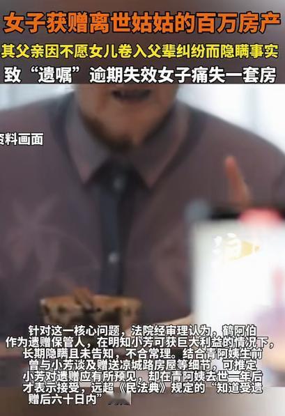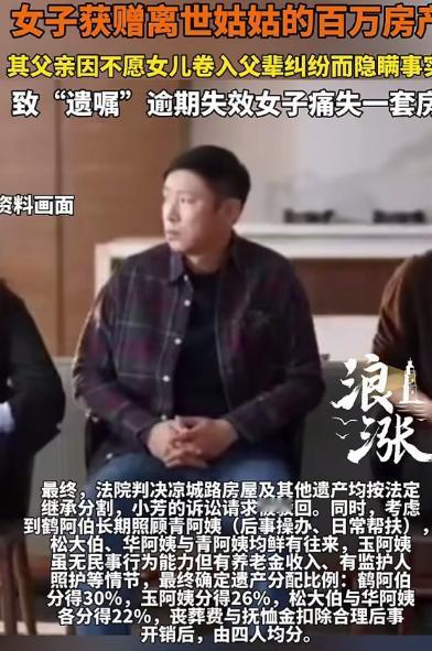 “这个爹把女儿坑惨了!”上海,一女子的姑姑无儿无女,姑姑去世前立下遗嘱,把价值几百万的房产赠予女子,可女子的父亲,却对女儿故意隐瞒姑姑的死讯和遗嘱,导致女子1年后才知道,但遗嘱已经“逾期失效”,女子痛失百万房产,房产由父亲4兄妹分割,父亲得了30%份额,其他3兄妹分70%,女子一毛都没捞到。女子愤怒的质问父亲为啥这么干?他的回答惊呆众人! 小芳出生在一个普通的上海家庭,父亲兄妹四人,关系表面和气,私下却各有算盘。 她的姑姑一辈子未婚无子,年轻时在单位分到了一套地段不错的老房子,后来赶上拆迁置换,房子越换越大,市值早已达到几百万元。 姑姑性格清冷,但对小芳却格外疼爱。小芳上学时,姑姑经常悄悄塞给她零花钱,逢年过节也总是单独把她叫到家里吃饭。 姑姑身体每况愈下的那几年,小芳还在外地工作,来上海的次数并不多。父亲偶尔提起姑姑,只说她年纪大了,身体一般,让小芳安心工作,不用操心。 事实上,在生命的最后阶段,姑姑早已看透了几个弟弟妹妹在“养老”和“房子”上的微妙态度。有人嘴上关心,行动却寥寥;有人来得勤,却总把话题绕到房产将来怎么处理上。 在一次律师到访后,姑姑正式立下遗嘱:名下唯一的房产,在自己去世后,全部赠予侄女小芳。律师反复确认了姑姑的真实意思表示,并按程序进行了公证。 姑姑说得很清楚:“我没孩子,这房子留给小芳,她心善,也踏实。” 然而,姑姑去世的消息,却被小芳的父亲刻意“按下了暂停键”。 那一年,小芳像往常一样忙着工作,偶尔给父亲打电话,父亲语气一切如常,只说家里都好,让她别担心。 直到一年后,一次家庭聚会中,小芳无意间听到堂哥提起“姑姑房子已经分好了”,她当场愣住,追问之下,才得知姑姑早在一年前就已经去世。 小芳连夜回到上海,翻遍了家里的旧文件,又辗转联系律师,终于得知一个残酷的事实:虽然姑姑确实立下了遗嘱,但按照相关规定,继承人需要在规定期限内主张权利。 由于小芳长期不知情、未及时办理继承手续,房产已被视为无人主张的遗产,进入法定继承程序。 最终,房产由姑姑的四个兄妹依法分割。小芳的父亲分得了30%的份额,其余三位叔叔姑姑合计分得70%。而遗嘱中唯一的受赠人——小芳,却一分钱也没拿到。 得知结果的那一刻,小芳整个人都崩溃了。她不明白,明明是姑姑的真实意愿,明明遗嘱白纸黑字,为什么会变成这样。 更让她无法接受的,是这一切的源头,竟然是自己的亲生父亲。 在家中客厅里,小芳红着眼睛质问父亲:“你为什么要瞒着我?你明明知道姑姑把房子留给我!” 父亲沉默了很久,点了一支烟,叹了口气,说出了一句让在场亲戚都愣住的话:“我是为你好。你不知道你那几个叔叔姑姑有多难缠。” 父亲解释说,姑姑去世后,其他三兄妹几乎天天上门,质疑遗嘱的真实性,有人暗示姑姑“被人影响”,有人甚至放话要打官司。 父亲觉得,一旦让小芳出面,不但要面对复杂的法律程序,还要承受来自亲戚的围攻,甚至可能影响她的工作和生活。 “你还年轻,扛不住这些事。”父亲自认为是“替女儿挡刀”,“等事情拖一拖,大家情绪过去了,再说也不迟。” 可他没想到,这一拖,直接拖没了女儿的全部继承权。 小芳听完,气得浑身发抖:“那是我的房子,是姑姑留给我的!你所谓的为我好,就是替我做主,把我的东西分给你们?” 父亲低声说了一句:“至少我还能分到三成,将来也是留给你的。” 这句话,彻底击碎了小芳最后一点幻想。 她终于意识到,在这场遗产博弈中,所谓的“保护”“为你好”,不过是长辈站在自己立场上的自我安慰。房子已经分割完毕,法律程序也已走完,一切再无挽回的余地。 事件曝光后,网友纷纷热议。有人痛斥父亲擅自做主,认为这是赤裸裸的侵害女儿权益;也有人感叹,亲情一旦和利益捆绑,往往比陌生人更残酷。 更多人则从中得到警醒:遗嘱不是写完就万事大吉,继承权利必须及时主张,否则再清楚的“心意”,也可能被现实吞没。