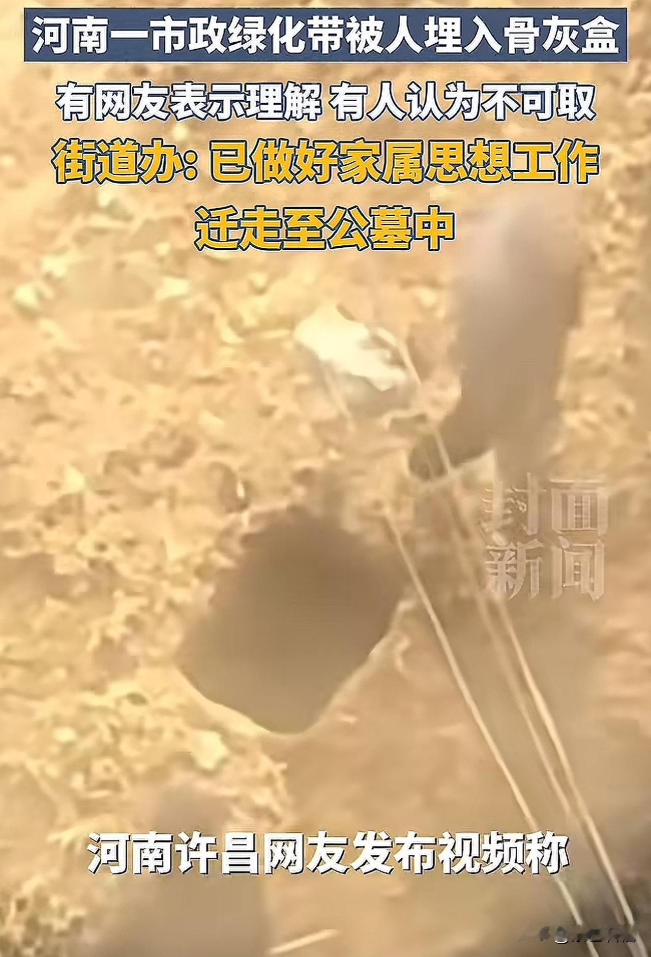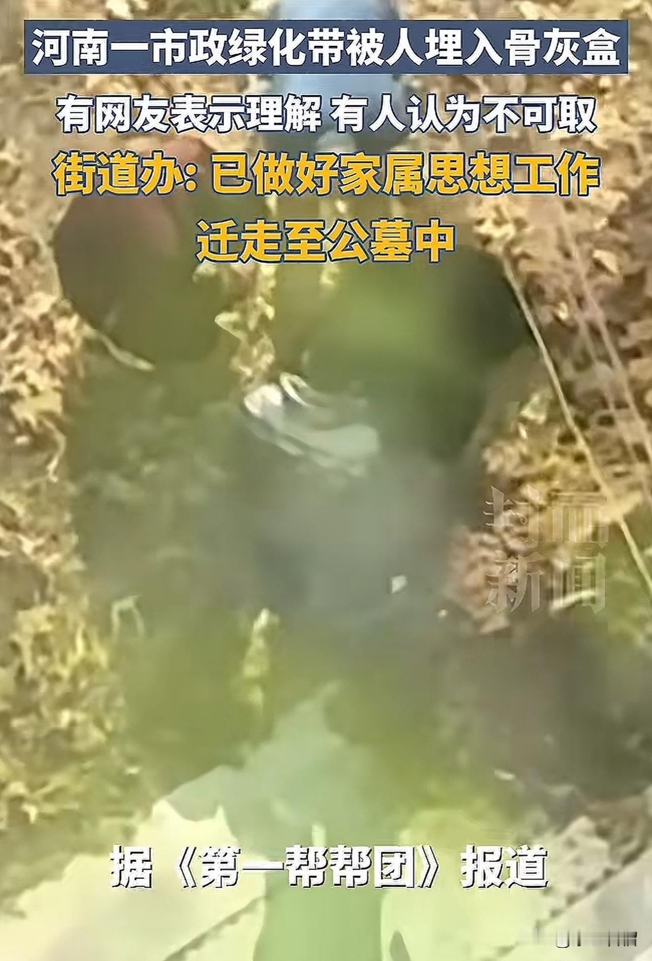 这也太让人心里犯膈应了! 1月8日,有网友爆料,河南许昌一小区居民反映,小区楼下有人私自开挖绿化带,疑似要埋骨灰盒。 对此,小区物业回应称,掩埋地点是市政绿化带,并非小区内部。 在我看来,不管是不是小区内部,把骨灰盒埋进绿化带,这事换作谁知道了心里都不会舒坦。要是知道进出小区的绿化带里埋着骨灰盒,估计半夜都不敢回家了。 好在当地街道办工作人员表示,已做通家属的思想工作,会将骨灰盒迁至公墓。 对于小区门口绿化带埋骨灰盒这事,大家怎么看?会觉得忌讳吗? (图片来源网络)
