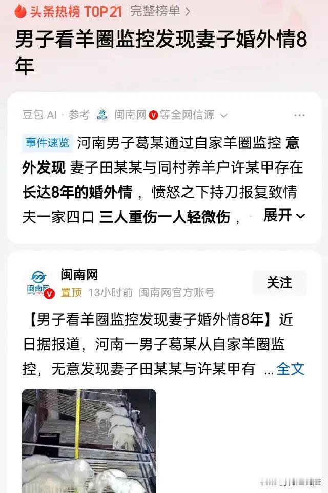 **他沉默了八年,最终用暴力撕开了所有人的伪装。** 河南新乡,一个普通羊圈的监控,撕碎了一个男人十年的婚姻。 葛某在外打工养家,回乡查看羊圈时,却在监控里看到妻子与同村老许抱在一起亲热—— 画面刺眼,时间戳显示:这不是第一次。 调查后他才明白,这场背叛,已经持续整整八年。 而更荒诞的是,两个孩子中,竟有三个是老许的?不,最痛的不是血缘错乱, 而是每一天,他都在为“别人的父亲”身份,流汗、流血、还债。 事发后,老许和妻子跪地求饶,写下保证书断绝来往。 可一年后,葛某再次回家,发现两人仍在微信调情、深夜密会。 那一刻,他积压多年的屈辱、愤怒、无助彻底炸裂。 他冲进老许家,棍棒挥下,三人重伤,一人轻伤。 曾经低头种地的农民,成了警方通缉的嫌疑人。 可网友却吵翻了天:“换我我也忍不了!” 有人怒吼:“如果法律不能守护一个男人的家,他还能靠什么?” 也有人说:“再痛也不能伤及无辜!那里面有老人孩子!” 是的,他的手段违法,必须接受审判。 但我们也不能回避: 当一个男人发现,自己半生奋斗换来的是绿帽、欺骗、亲子鉴定全非, 社会给了他多少合法出口? 报警有用吗?婚外情不犯法;起诉能挽回尊严吗?赔偿最多几千块。 心理咨询?农民工哪知道什么叫“情绪疏导”? 这不是为暴力洗白,而是质问: 为什么总要等到血案发生,我们才开始讨论“情感崩塌的预警机制”? 真正的正义,不该只出现在判决书里, 更应在每一个被背叛者深夜辗转时,有一条能求助的路。 评论区一句话刷屏: “他本可以是个好丈夫、好父亲,可惜没人告诉他——被毁掉的人生,也可以体现人生价值。打动人心的文章 故事型文章创作