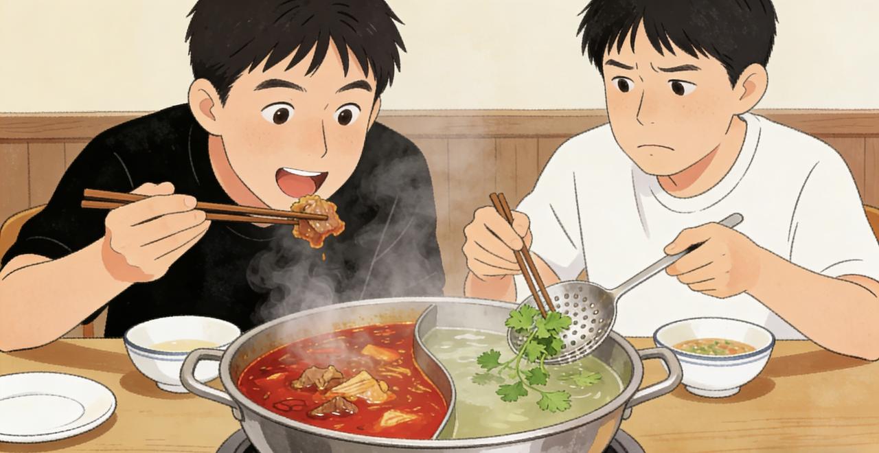 我:看到香菜像见到宿敌,一丝都不能忍,闻到味道就要退避三舍。 朋友:辣椒是她的天敌,微辣已是极限,每次吃饭必问“这个辣不辣”。 我俩的友谊,就在这一绿一红之间反复试探。 说实话,香菜党和反香菜党,吃辣区和免辣区,大概是美食界最泾渭分明的两大阵营。而当我们这两个“阵营代表”成为朋友,每次约饭都像一场谈判。 “吃火锅吧?” “可以,但我只吃清汤。” “那还有什么意思……要不你试试香菜?” “你先试试小米辣?” 最后往往各退一步——点个鸳鸯锅,我涮我的辣锅,她守她的清汤。她小心翼翼地避开我碗里不小心飘过去的香菜,我体贴地把辣椒碟挪得远远的。 有时候想想挺有意思:我们对食物的执着,某种程度上定义了我们的一部分。我不吃香菜,是因为觉得那味道像某种“有攻击性的植物”;她不吃辣,是天生肠胃脆弱。这些小小的坚持,成了我们个性地图上的有趣坐标。 一起吃饭五年,我们逐渐摸出了门道:找那些既有香菜也有辣椒,但都能单独处理的店。她会帮我把香菜挑干净,我会提醒服务员“那份不要辣”。点菜时自动进入“对方模式”:“这个她不能吃”“这个他不行”。 有次她突然说:“其实我偷偷试过一点你的辣锅。” 我震惊:“然后呢?” “喝了三杯水。”她笑,“但就想知道你为什么这么喜欢。” 我也曾夹起一根香菜,做了十分钟心理建设,最后还是在她的爆笑中放弃。 我们没打算改变对方,但在一次次“这个你能吃吗”的询问中,多了份心照不宣的体贴。成年人的友谊,未必是轰轰烈烈的两肋插刀,反而常藏在这些细微的迁就里。 如今我们依然一个见香菜皱眉,一个遇辣椒色变。但这并不妨碍我们继续约饭,继续在菜单上寻找彼此都能接受的那道菜。毕竟,能尊重对方口味的朋友,比找到完美契合的餐厅更难能可贵。 你的朋友里,也有这样“口味相反”却意外合拍的吗?
