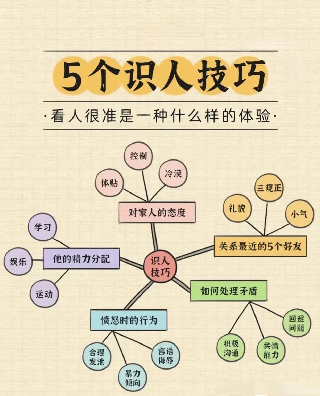 识人辨心:喜欢打听这三件事的人,一定要远离! “心术不正”的人,往往喜欢向你打听这三件事,你一定要提高警惕 与人相处,识人辨心是一门必修课。有些人表面热情和善,背地里却藏着算计,而“心术不正”的人,从不会直白暴露自己的心思,却总爱通过打听三件事,悄悄打探你的底细、拿捏你的软肋,遇到这类追问,一定要提高警惕。 一、 打听你的隐私短板,专挑你的痛处和软肋问 心术正的人,与人聊天会懂得分寸,不会追问别人不愿提及的私事;而心术不正的人,最爱挖别人的隐私和短板。 他们会拐弯抹角问你“是不是和家里人闹矛盾了”“之前工作失误亏了多少钱”“感情里是不是被人骗过”,甚至会追问你的身体缺陷、过往糗事。这些问题,要么戳你痛处,要么藏着你的软肋。 他们打听这些,不是为了安慰你,而是为了抓住你的把柄——要么在背后嚼舌根、搬弄是非,要么在关键时刻拿你的短板打压你、拿捏你。遇到总追问你隐私短板的人,别傻傻交底,含糊带过就是最好的自保。 二、 打听你的经济状况,精准算计你的利益得失 “你一个月挣多少钱?”“你家房子值多少?”“你最近是不是发了笔财?”——这类关于经济状况的问题,是心术不正的人最爱问的。 他们不会光明正大问,而是用闲聊的语气旁敲侧击:“看你穿得这么好,工资肯定不低吧”“最近手头宽裕吗?我有个赚钱的路子要不要一起”。 他们打听你的收入、存款、资产,不是羡慕你,而是在盘算“你有没有可利用的价值”:要么想找你借钱不还,要么想拉你进坑骗钱,要么嫉妒你过得好,暗中使绊子。真正关心你的人,只会在意你过得舒不舒服,从不会刨根问底你的钱包。 三、 打听你的人际关系,试图挑拨离间、借力使力 心术不正的人,还特别爱打听你的人际关系:“你和某某关系怎么样?”“他是不是很讨厌你?”“你觉得你们领导为人如何? 他们的目的很明确:一是摸清你的人脉圈子,看能不能通过你攀附别人;二是挑拨你和他人的关系——比如把你吐槽朋友的话,添油加醋传给对方,坐收渔翁之利;三是打探你和上级、同事的矛盾,抓住机会在背后搞小动作。 遇到这种追问,别随便评价他人,一句“都挺好的”“不太了解”就能堵住他的嘴,避免成为别人挑拨离间的工具。 识人不必探尽,知人不必言尽。生活中,真正的聪明人,从不会轻易透露自己的隐私、财帛和人际纠葛。 面对爱打听这三件事的人,一定要守住嘴、管住心,别让别有用心的人,有机可乘。 你有没有遇到过爱打听别人私事的人?当时是怎么应对的?评论区聊聊! 识人辨人技巧 识人小技巧