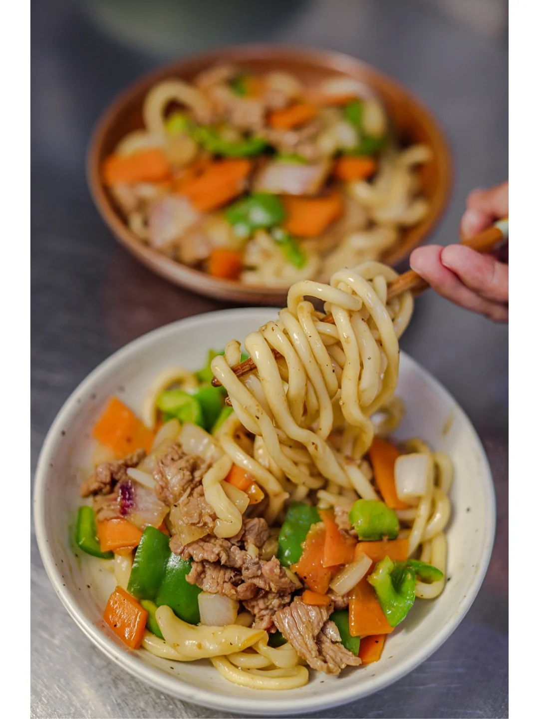 [种草R]今天买了牛里脊肉,做了黑椒牛肉炒拉条。