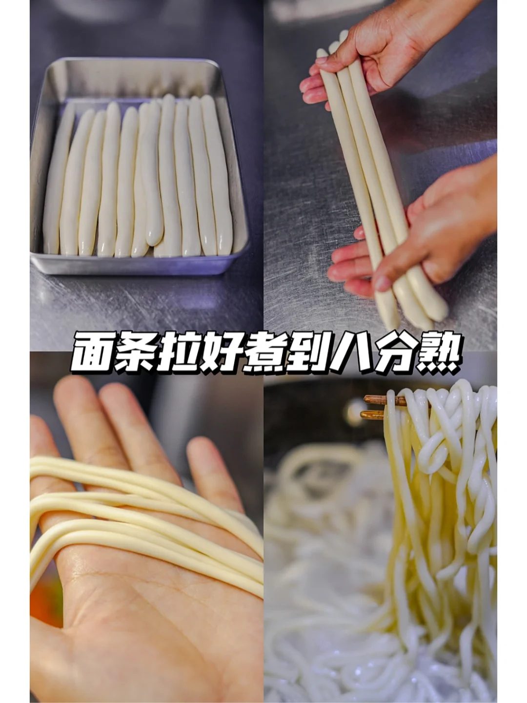 [草莓R]4.将拉好的面条煮到八分熟,捞出过一下凉水。