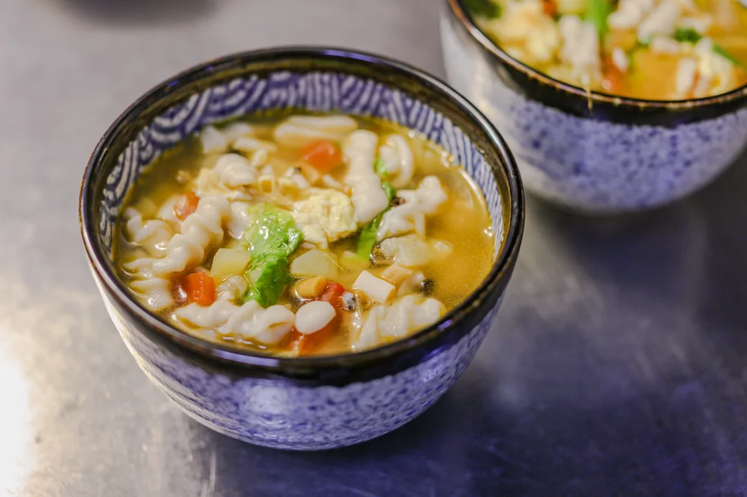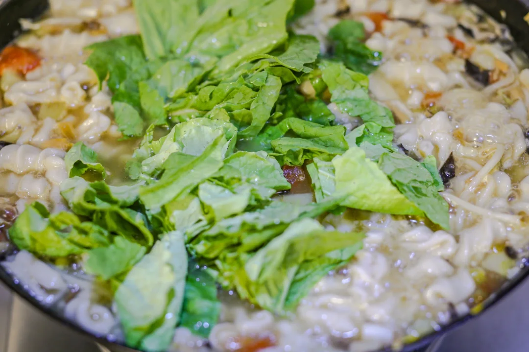 ✨4.滚开之后加入麻食,再次滚开之后加入食盐、胡椒粉、鸡粉,酱油。