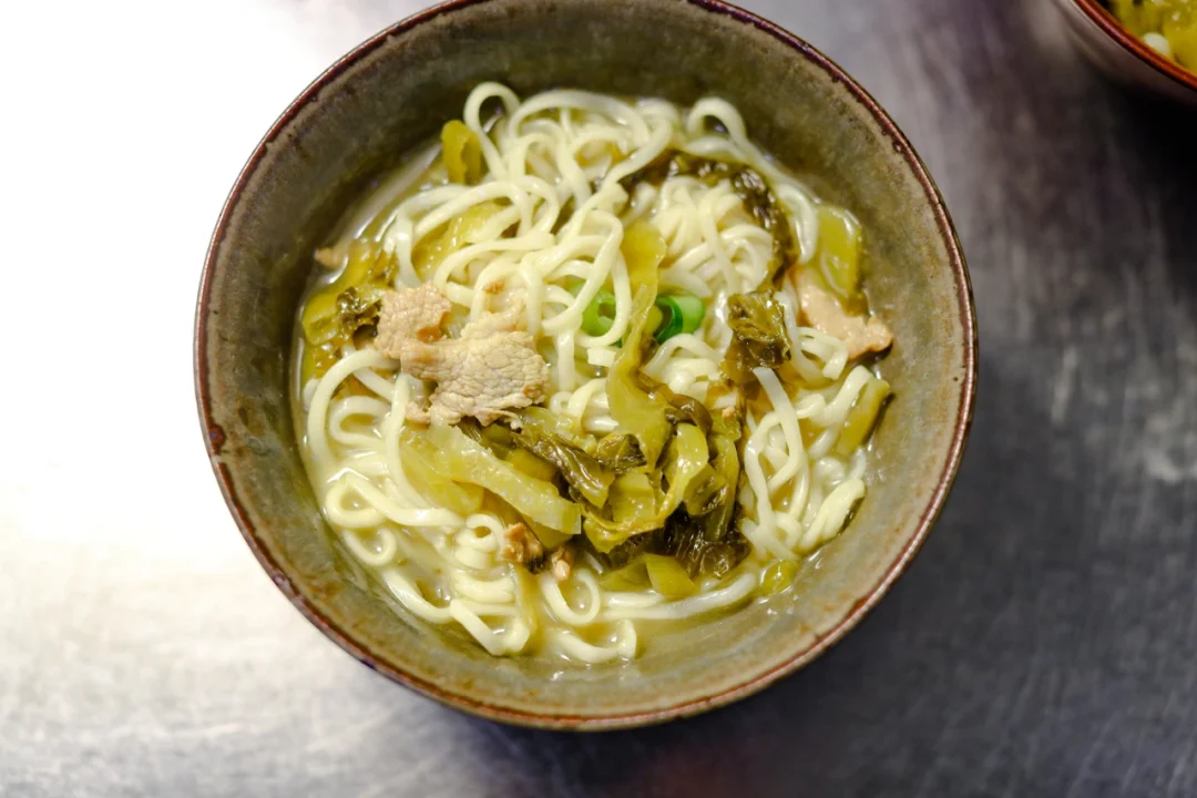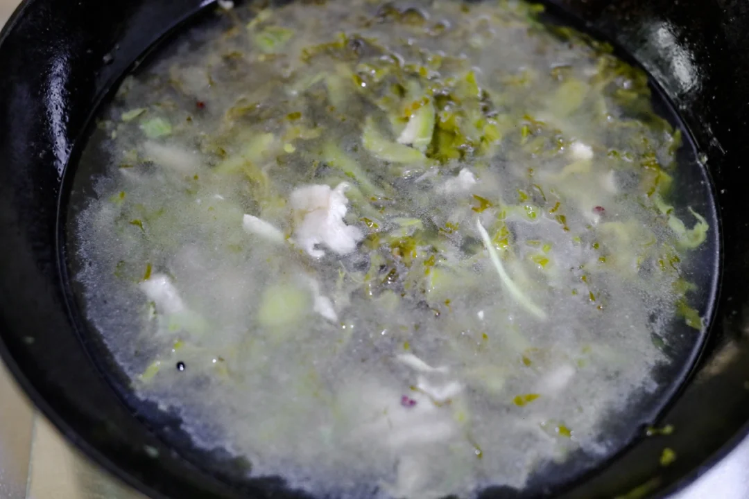 向他们取完经,中午作品就呈现到了餐桌上。虽然是腌渍的蔬菜,亚硝酸盐含量可能也比较高,但是汤头的味道还是很鲜美的,这点出于我的意料,是我喜欢的味道。