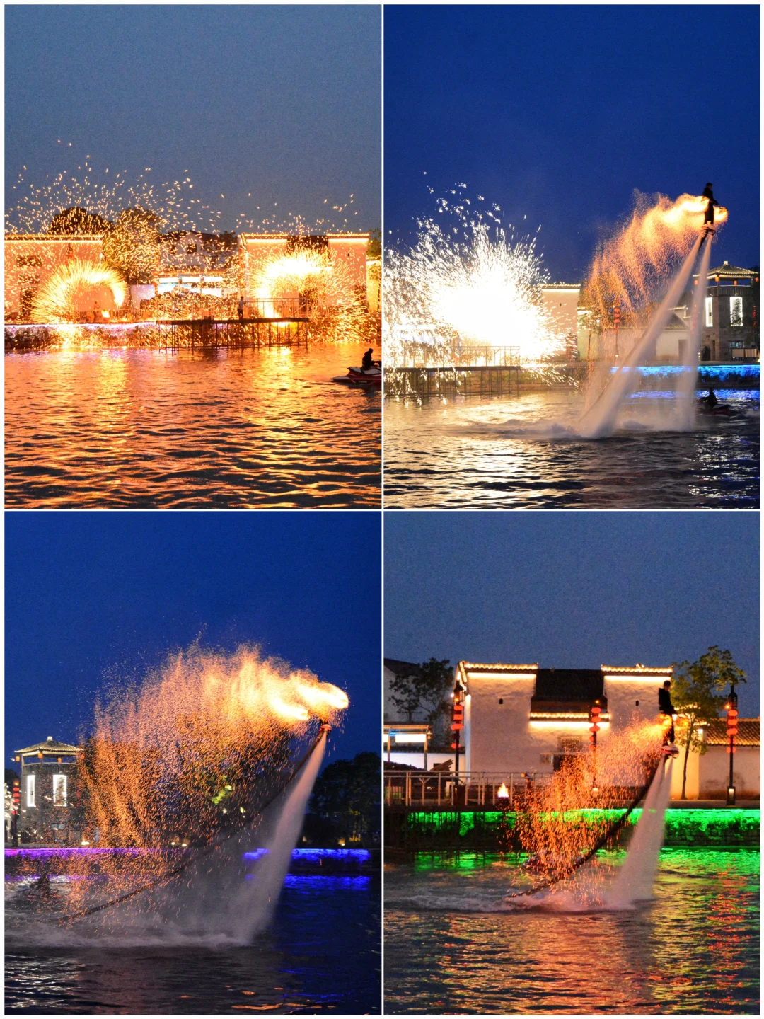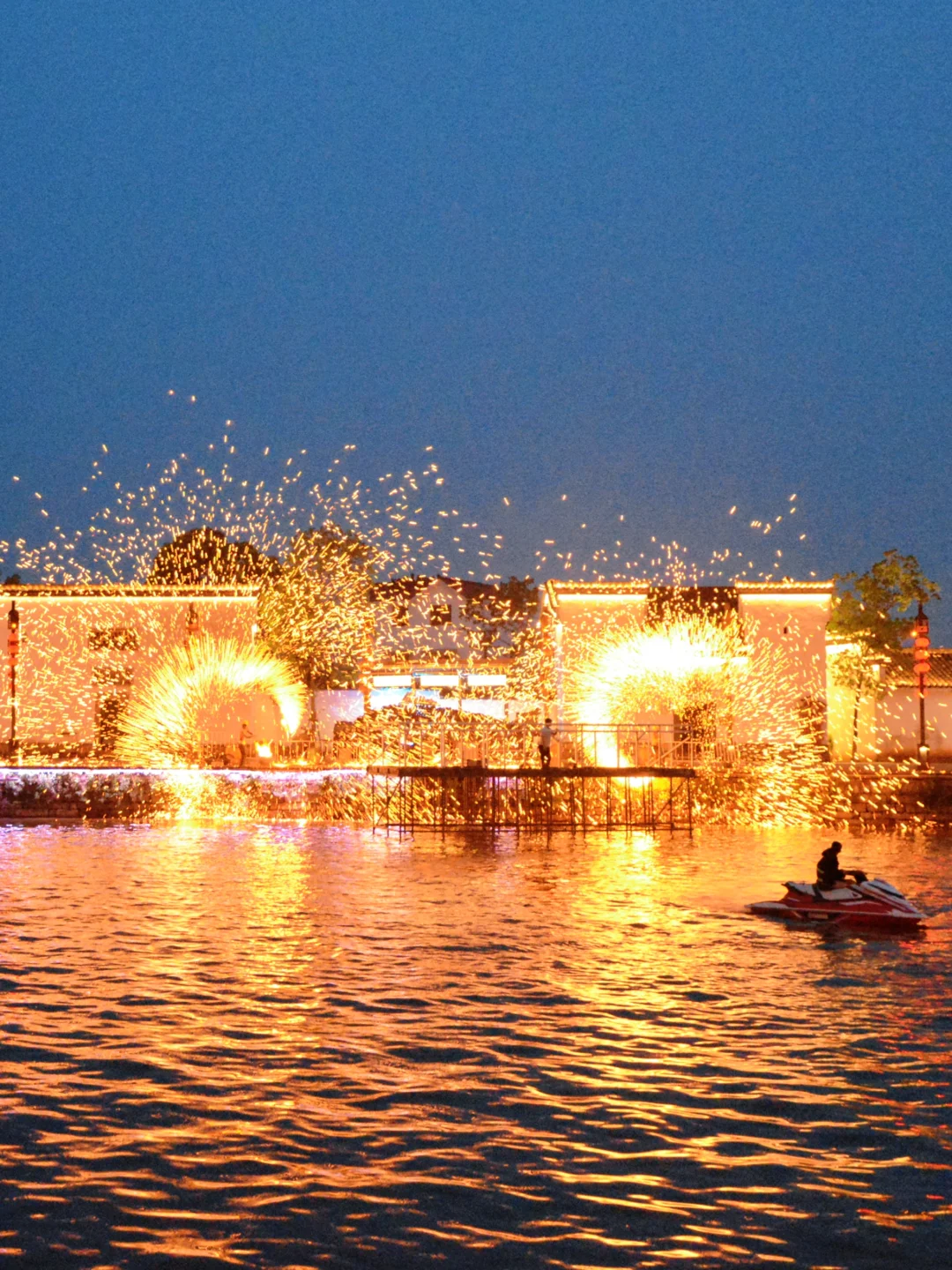 夜景灯光秀、飞天火壶、打铁花和烟花秀,现场敲震撼!古镇的魅力此刻具像化了。