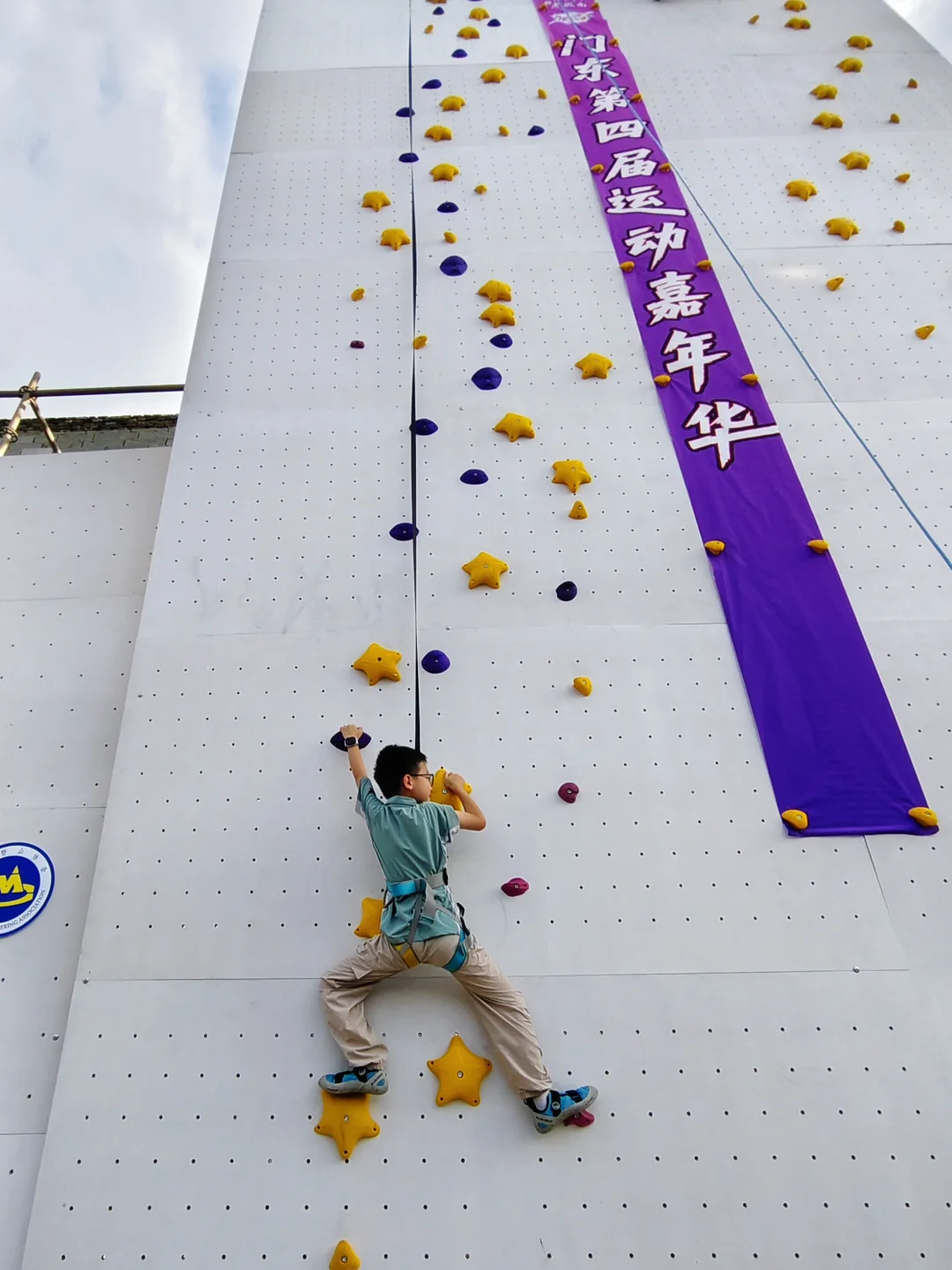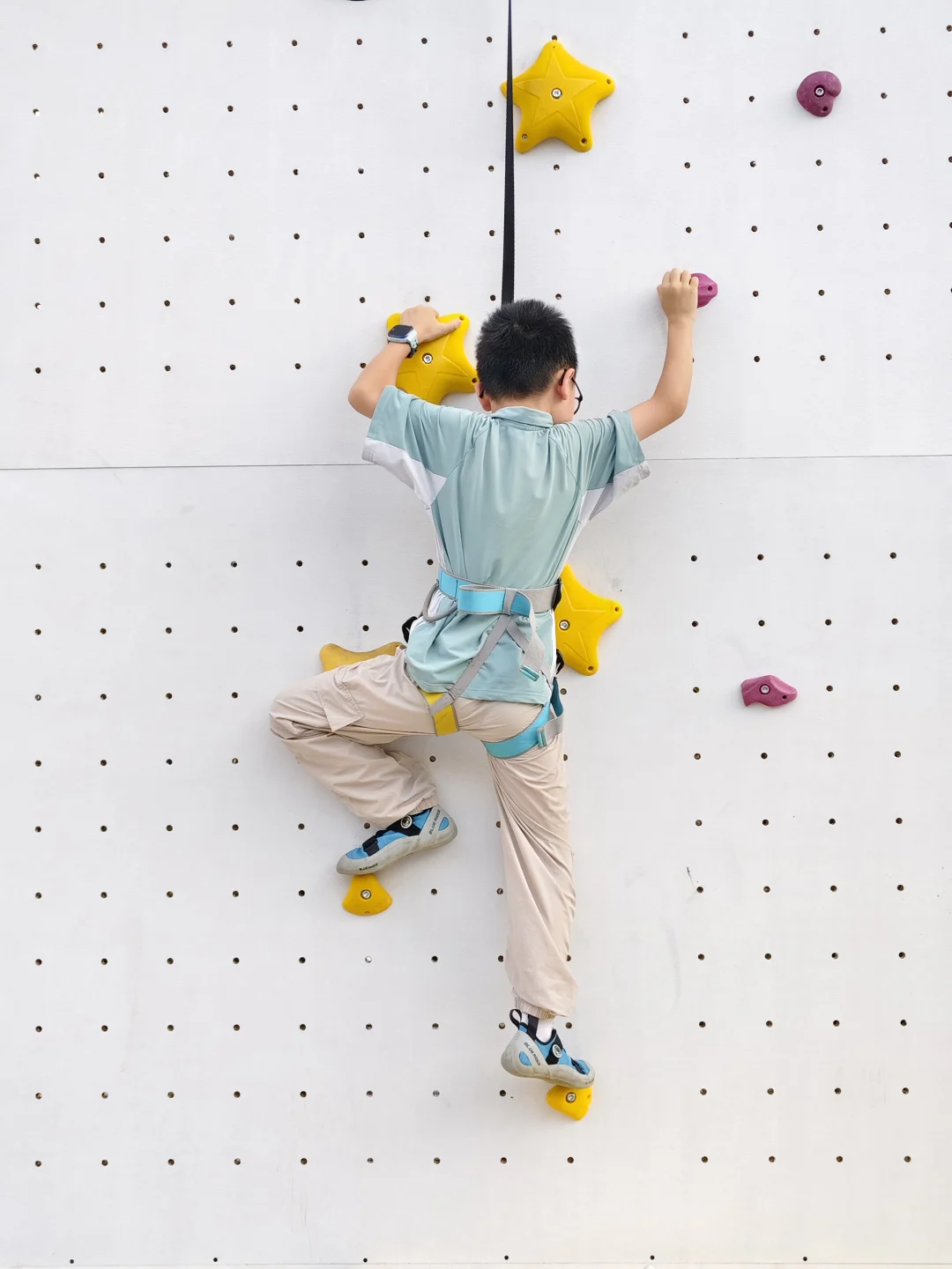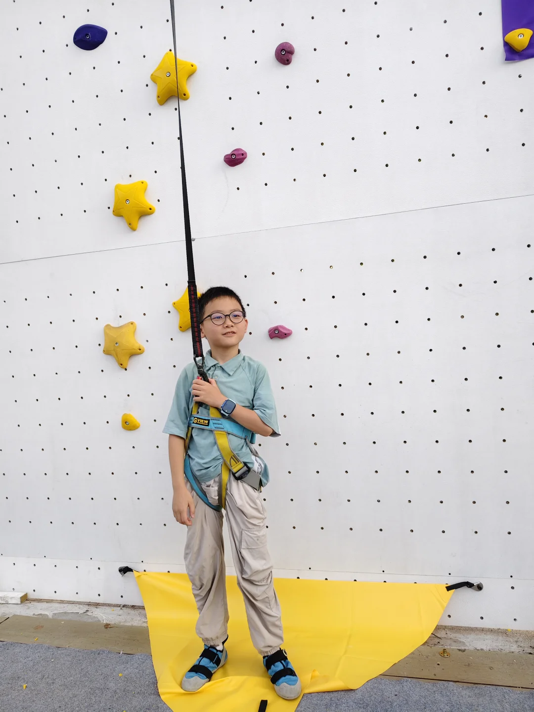 👍🏻朋友家的娃想要挑战一下自己,换上攀爬鞋系上安全绳,开启了攀爬模式,12米的高度对于初次攀岩的小朋友来说是个巨大挑战。