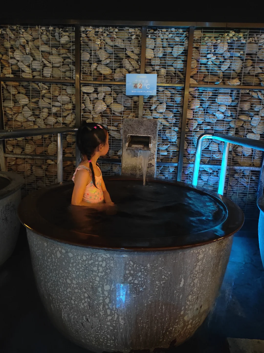 ⭐️臻温泉是单独的一栋楼,上下三层,一楼是室内温泉,温度适宜,不用担心着凉,比较适合老人小孩,有个海洋球泡池,拍照hin出片,还有个敲大的泡池,我妈说可以边泡汤边看电影太赞啦。