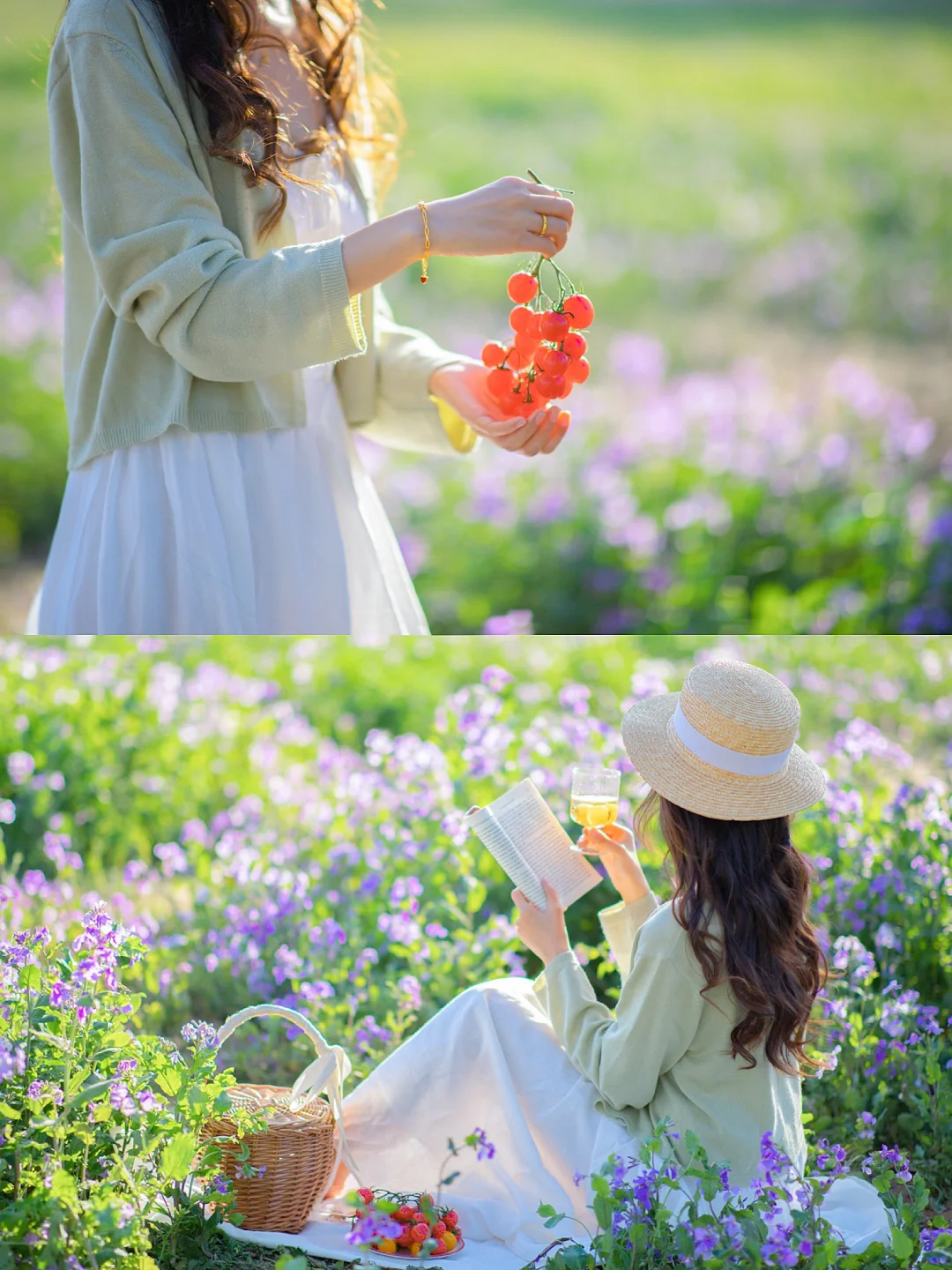 [二R]、拍摄机位的选择,逆光或者侧逆光,能拍出发光的发丝,以及植物透着光的治愈样子。