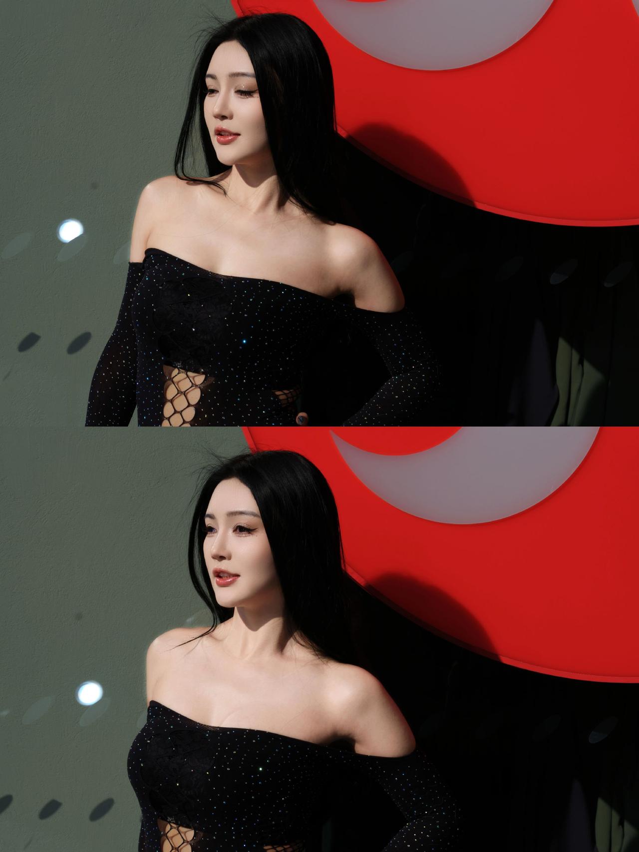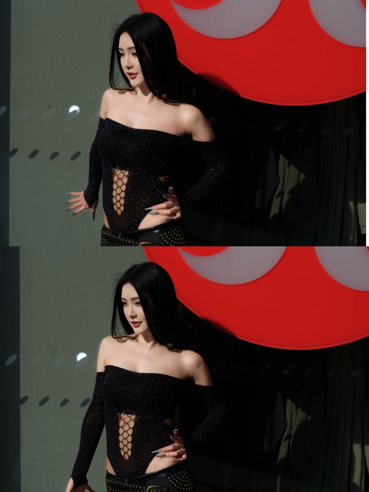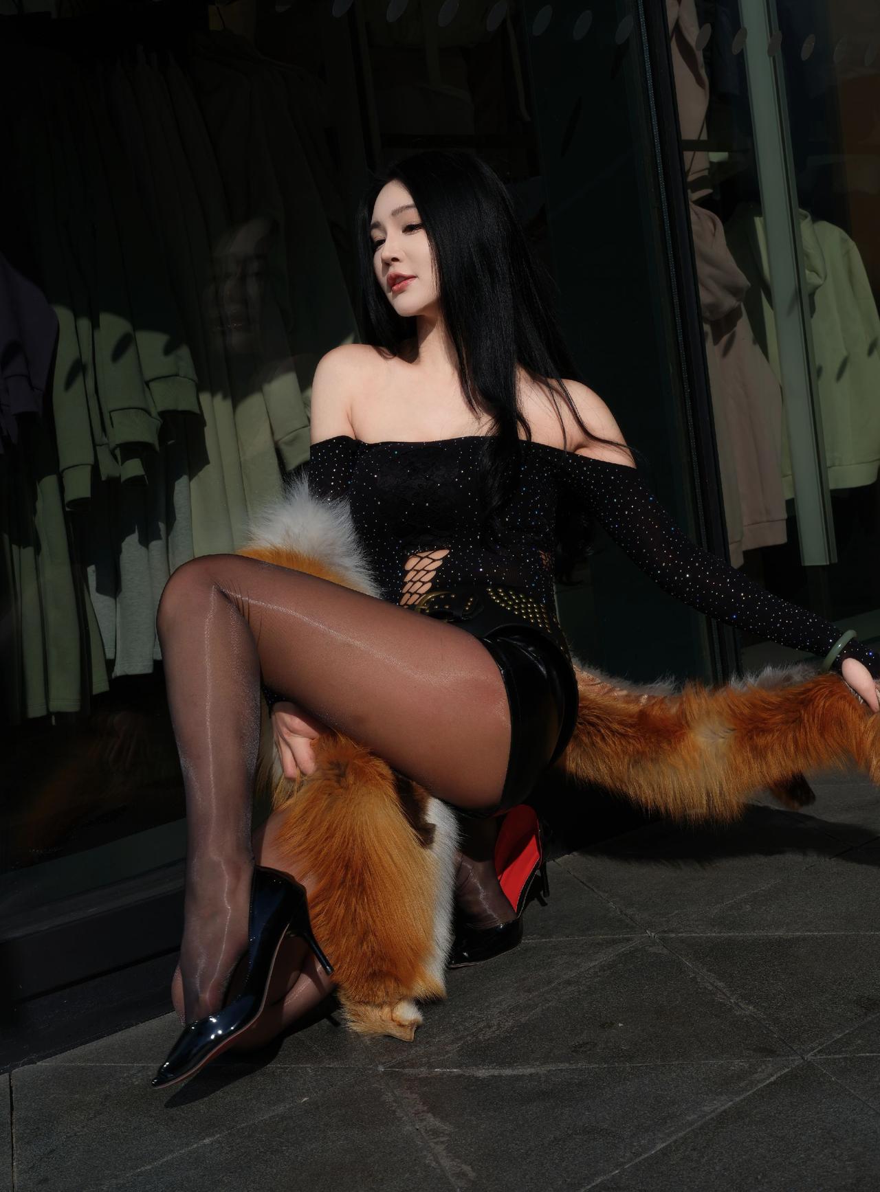 小姐姐这身黑色长裙搭配高跟鞋,气场全开,简直不要太撩人性感美女