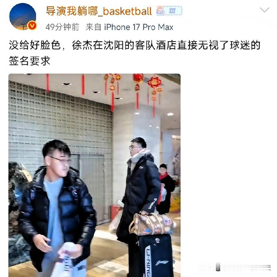 徐杰在客场打辽宁的前一夜,竟然帮女朋友直播带货,据媒体人透露,徐杰在随队落地桃仙机场时,面对等待多时的广东球迷索要签名,置之不理,我认为虽然徐杰一只手手里拿的茶叶蛋,一只手拖着行李箱,不方便,但完全可以把茶叶蛋交给球迷,接过球衣签个名,另外,深夜帮女朋友带货也不是什么违规的事,毕竟在睡眠时间,只要不影响状态,另当别论,假如导致发挥失常,那这事可就不简单。