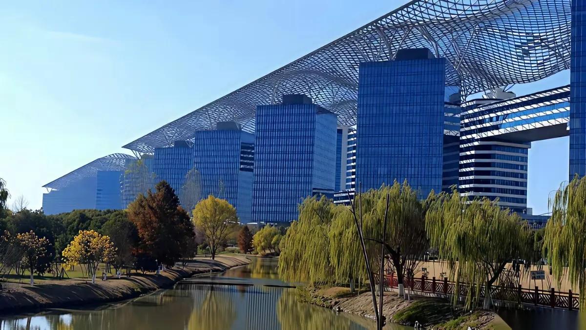 上海G60科创走廊,这个长达1点5公里的写字楼。是二十几幢楼连在一起,也是中国独一份。 是由上海临港集团在松江区为上海乃至长三角区域打造的一个科创园。附近还有一大片农田,现在这边只通了一条地铁,这片区都还是比较安静,是想给里面办公研发等老板,工人等科研人员一个安静的环境啊!这个建筑其实算是一片建筑好特别,楼顶都是用钢筋网连接在一起的。其实这上面的钢筋网还有重要的功能的,就是其是有节能等功能赋能的。 以上仅供参考,属个人意见!g60科创园 上海科创园