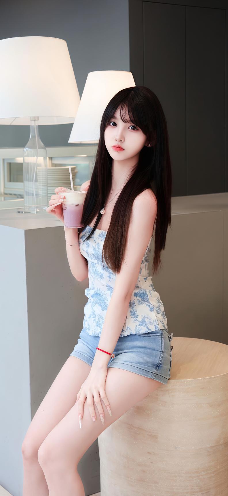 谁懂啊!白透肤上衣+浅蓝紧身牛子裤,往中式灰墙前一靠,这曲线直接戳中审美!