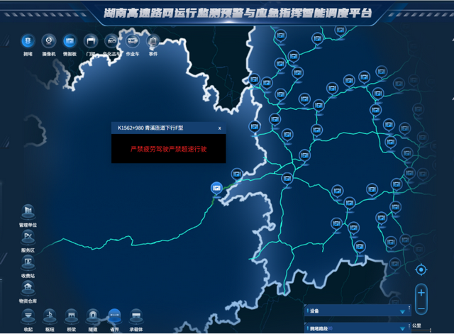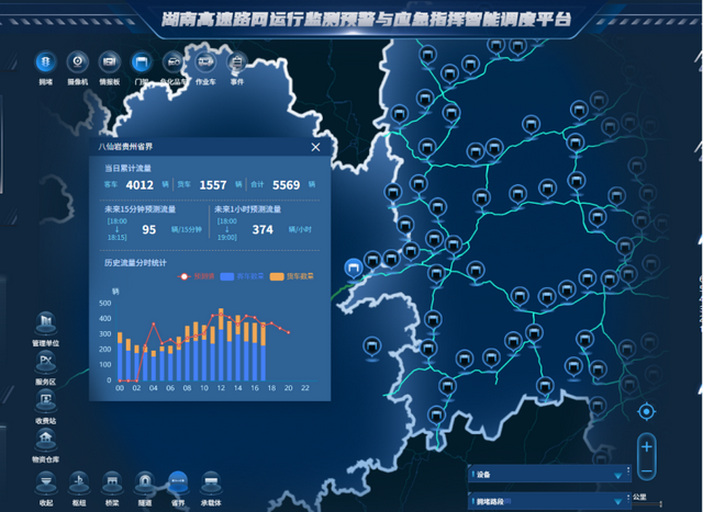 “湘黔通”湖南高速路网运行监测预警与应急指挥智能调度平台(图源:湖南交通运输)