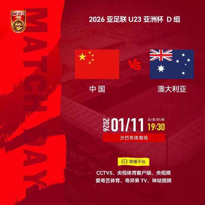 直播吧01月11日讯今晚19:30,U23国足迎来本届U23亚洲杯的第二场比赛,对手是澳大利亚U23。