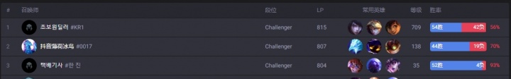 直播吧01月11日讯《英雄联盟》韩服出现一个神秘账号,这个全新账号在两天前开启排位模式,并在两天内进行了56局比赛(52胜4负,胜率93%),以804胜点暂列韩服第三。