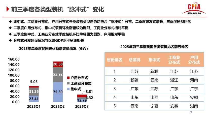 前述王勃华在“2025光伏行业年度大会”上的报告显示,2025年前三季度工商业分布式光伏装机前五名中,江苏、浙江、广东、安徽,悉数在列。